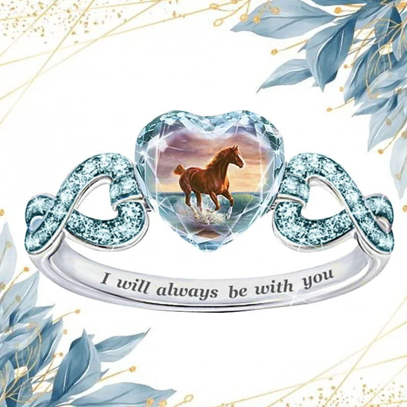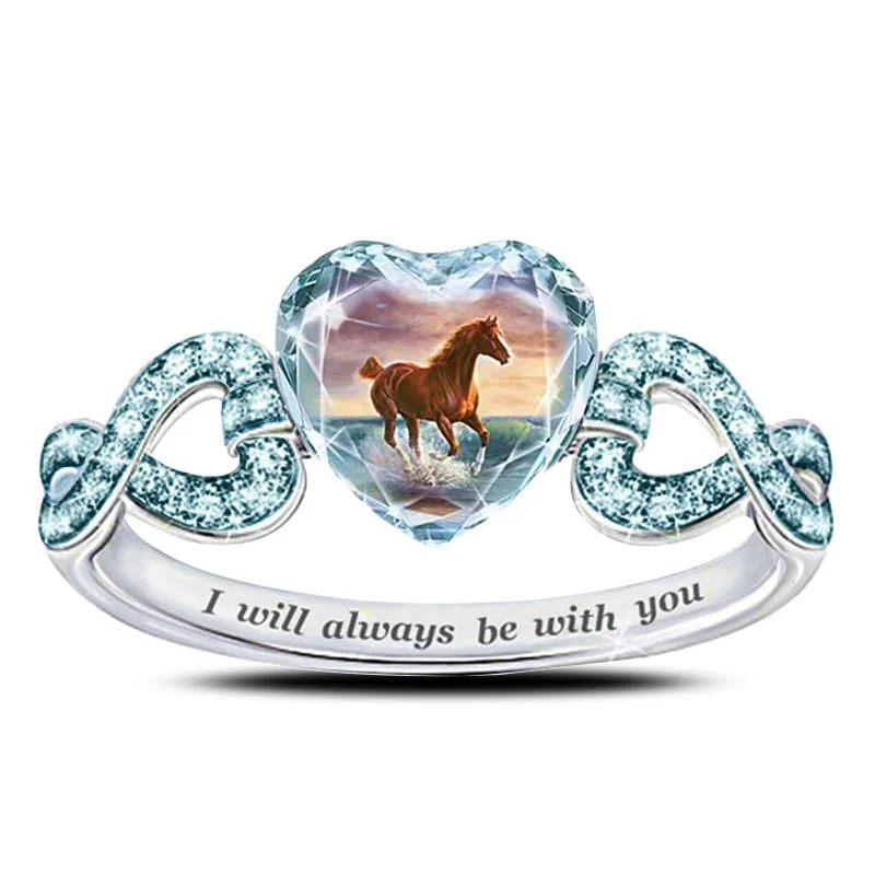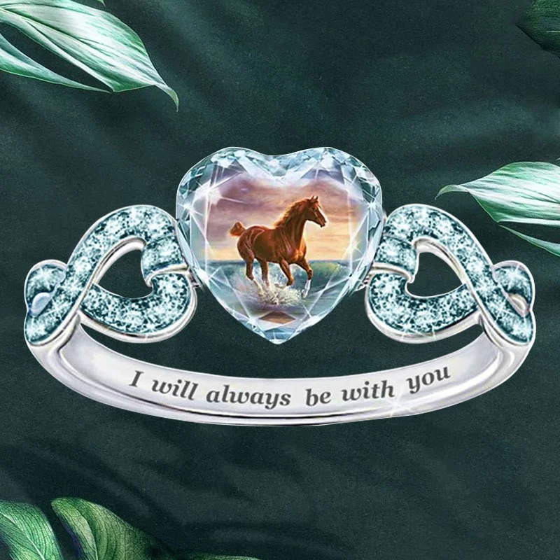 Женское кольцо с кристаллом в форме сердца, винтажное Ювелирное Украшение с кристаллами, кольцо с изображением лошади