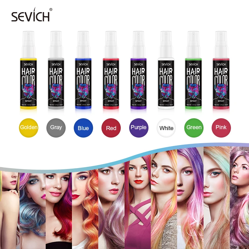 Sevich 8 цветов Временная Краска для волос спрей унисекс одноразовая мгновенная сушка волос жидкий цвет «сделай сам» Мода Красота Макияж 30 мл укладки волос