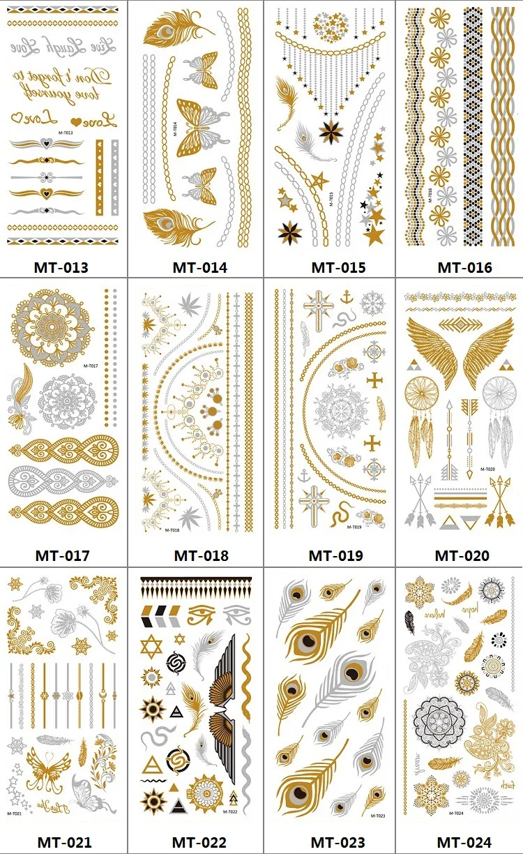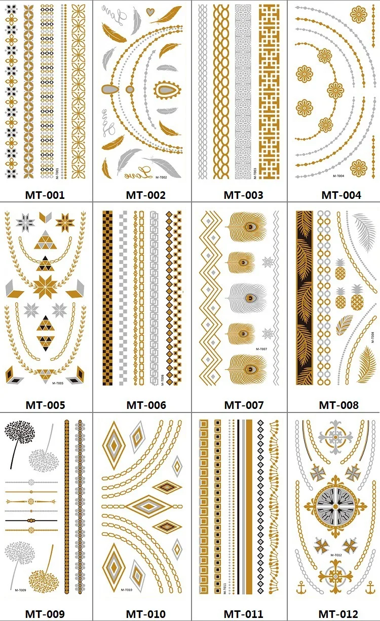 Водостойкая Временная тату-наклейка Woemn Золотая и серебряная мандала цветок ювелирные изделия флэш-тату Женская хна для Боди Арта искусственная татуировка