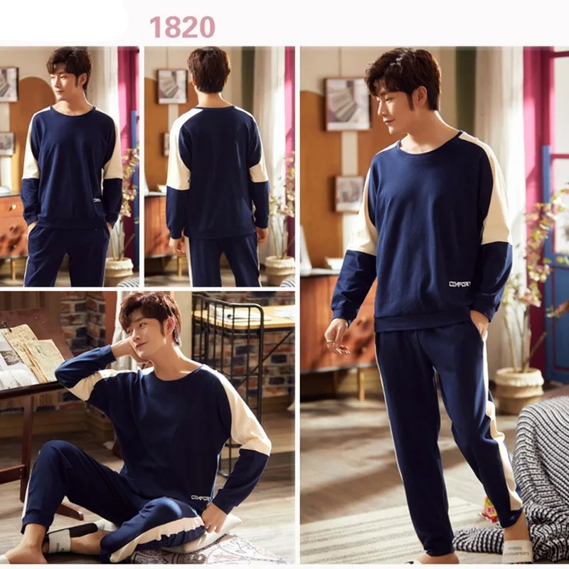 Хлопковый пижамный комплект с длинным рукавом для мужчин, весна-осень 2021, милая мультяшная Мужская одежда для сна, Повседневная Домашняя одежда, костюм, домашняя одежда