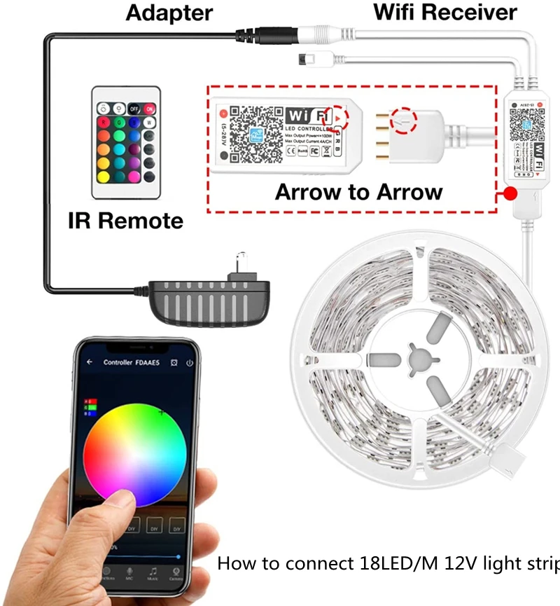 Страна: CL Emitting Color: WiFi Control Color: 18 LED one meter Length: 30m 98.4ft Wattage: EU plug Доставка: Standard Shipping 29.09.2021