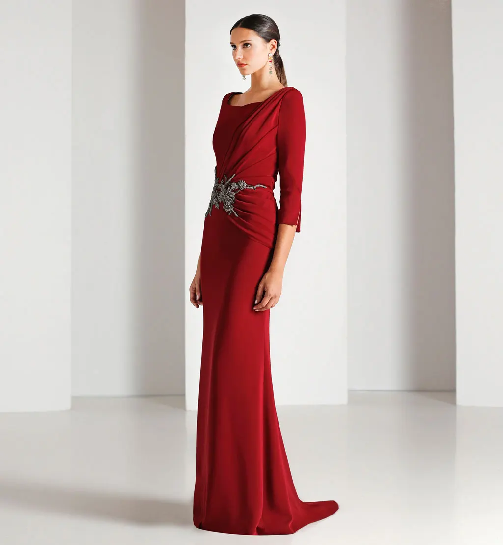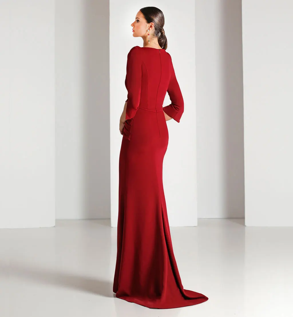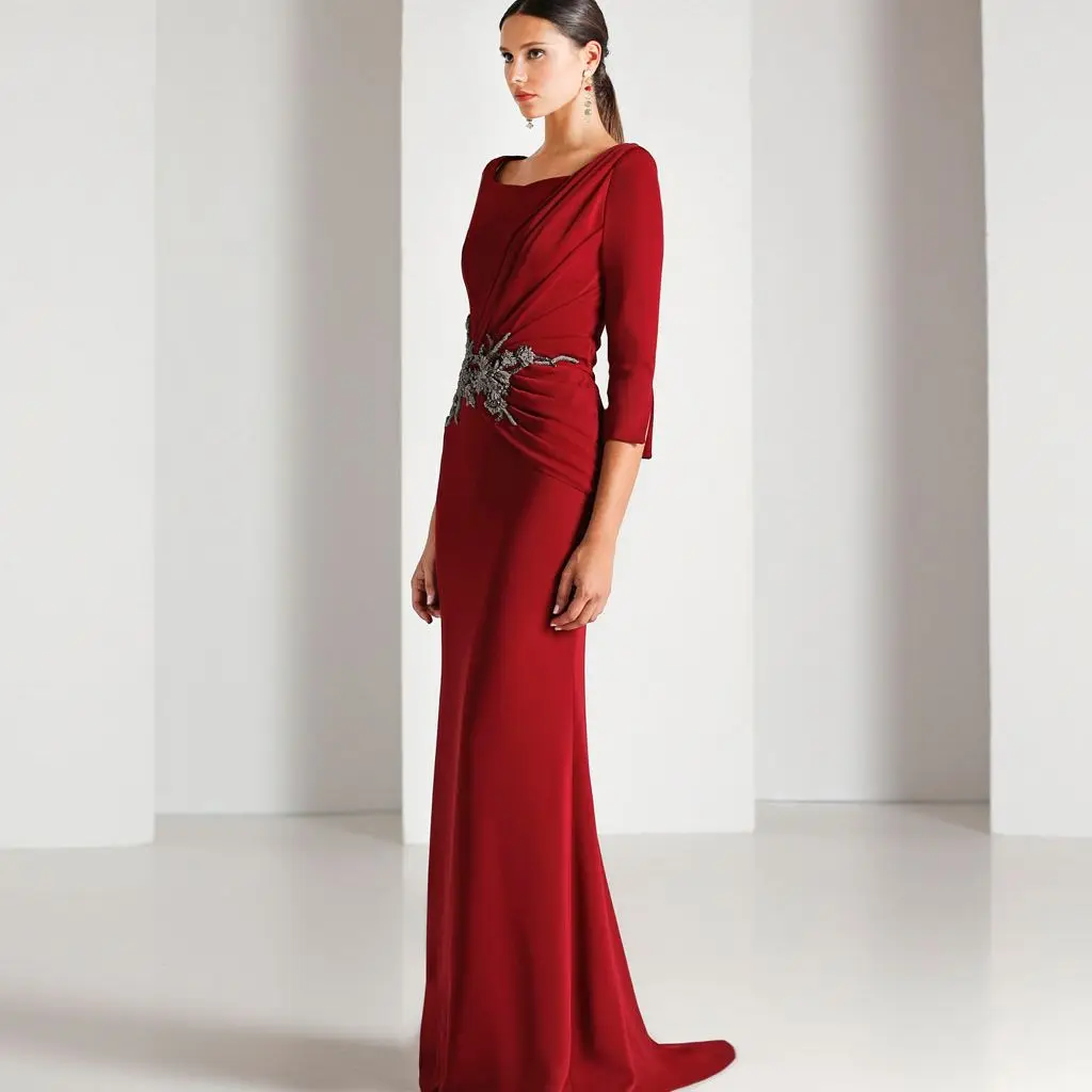 Темно-красное вечернее платье с рукавом до локтя, женское длинное атласное платье-Русалка для выпускного вечера, женское платье на заказ