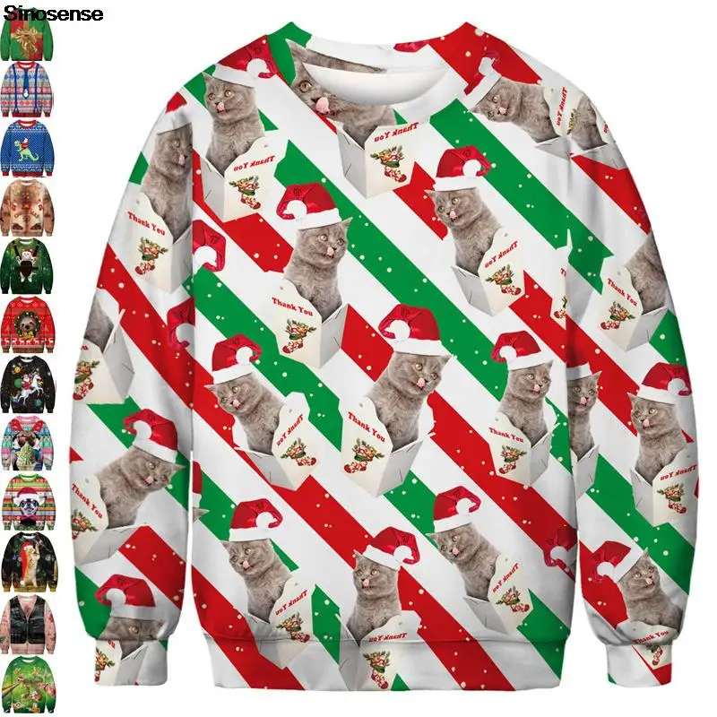 Свитер мужскойженский Рождественский, пуловер с 3D рисунком кота, у...