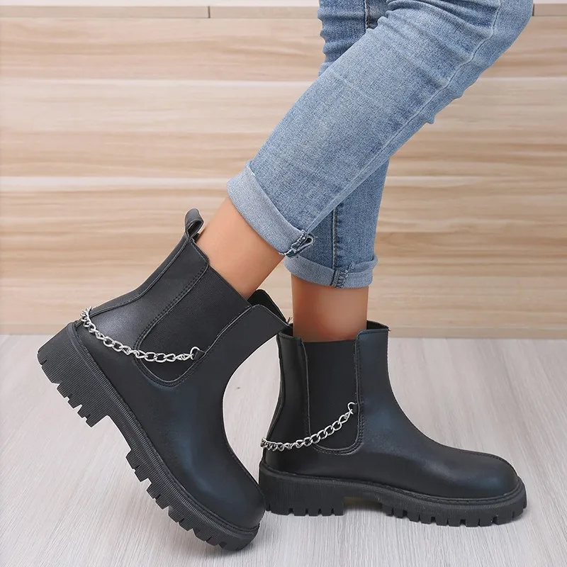 Женские ботильоны без застежки, зимние ботинки челси на платформе, ...