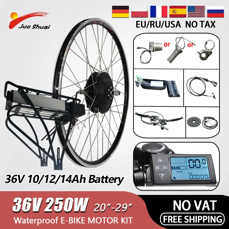 Беспошлинный набор электродвигателя 36 в 250 Вт с аккумуляторной задней стойкой 20 дюймов 26 дюймов 700C, комплект электродвигателя с передней и задней бесщеточной ступицей, электрический велосипед