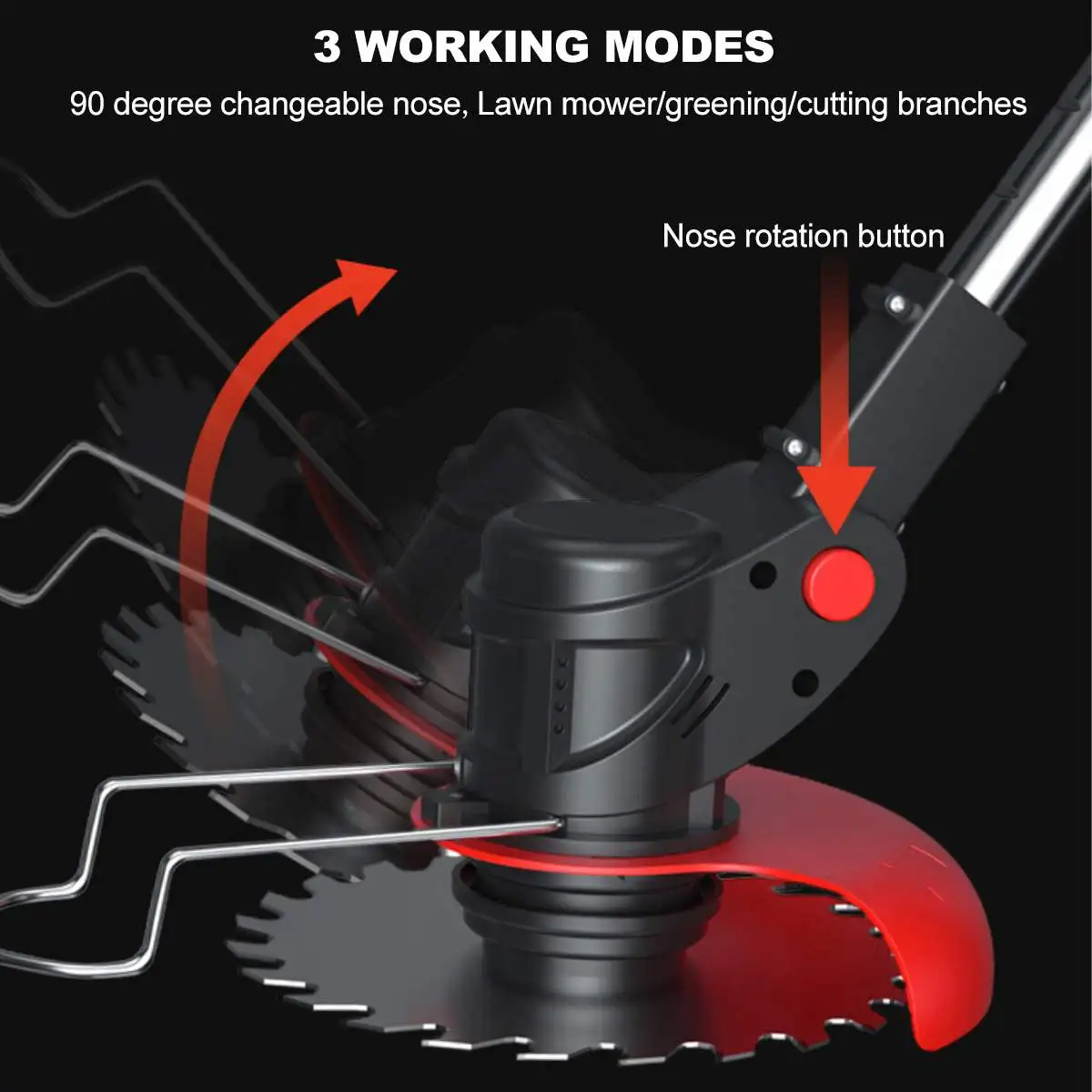 ★Три режима работы: газонокосилка/озеленение/режущие ветви