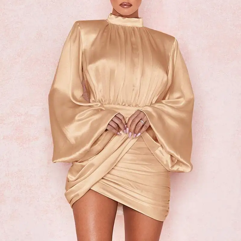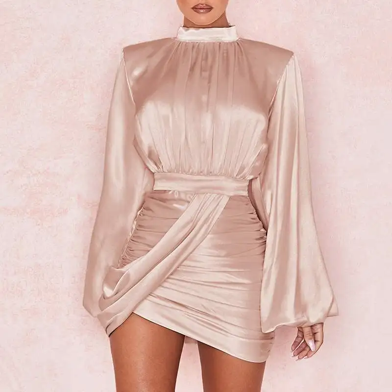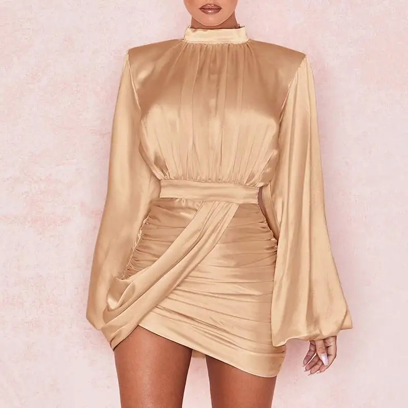 Женское осеннее атласное мини-платье 2022, плиссированное платье с ...