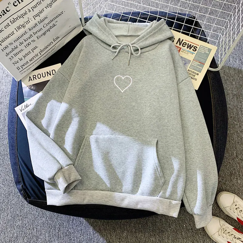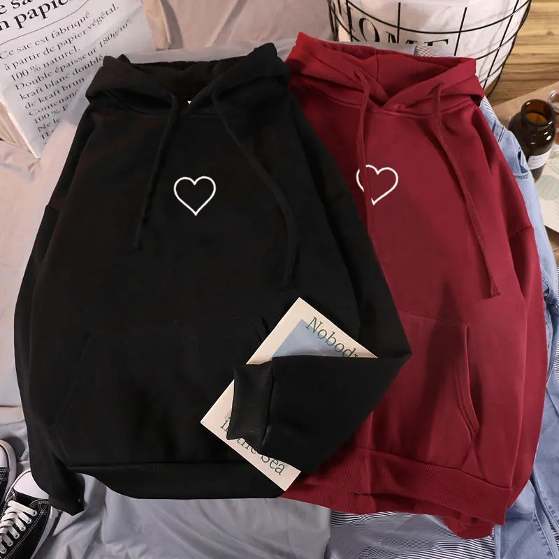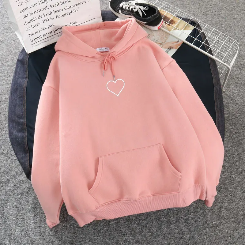 Толстовка с длинным рукавом и принтом в виде сердца, Толстовка С Карманами и кулиской, женский осенне-зимний топ, толстовка большого размера в стиле Харадзюку