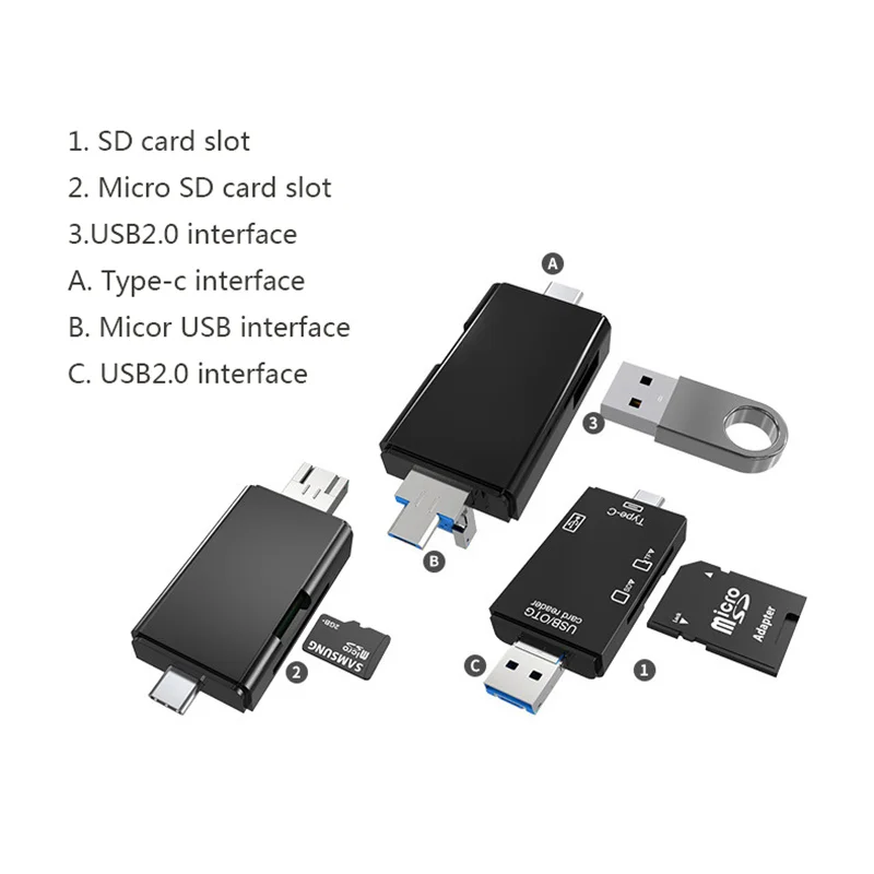 Кардридер 6 в 1, USB 2,0 Micro USB 2.0 Type C для SD Micro SD TF ад...