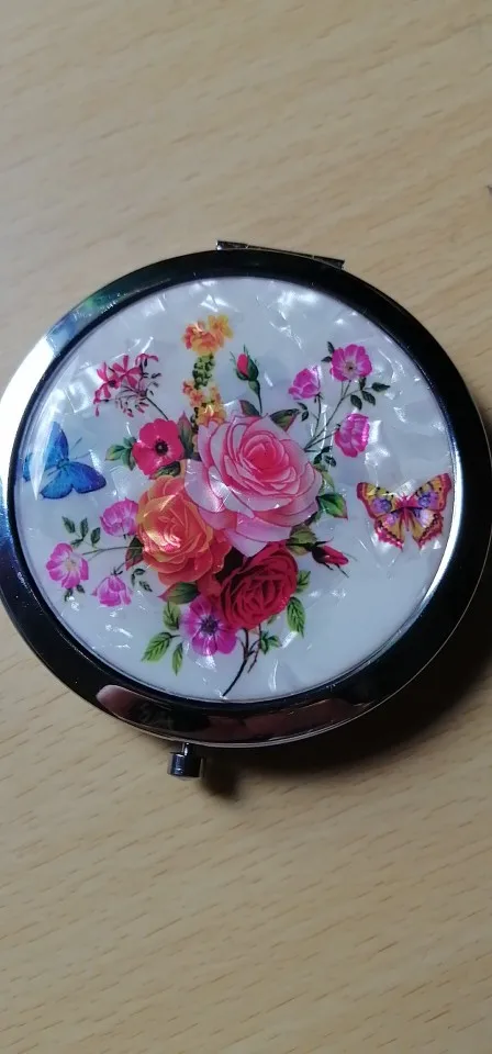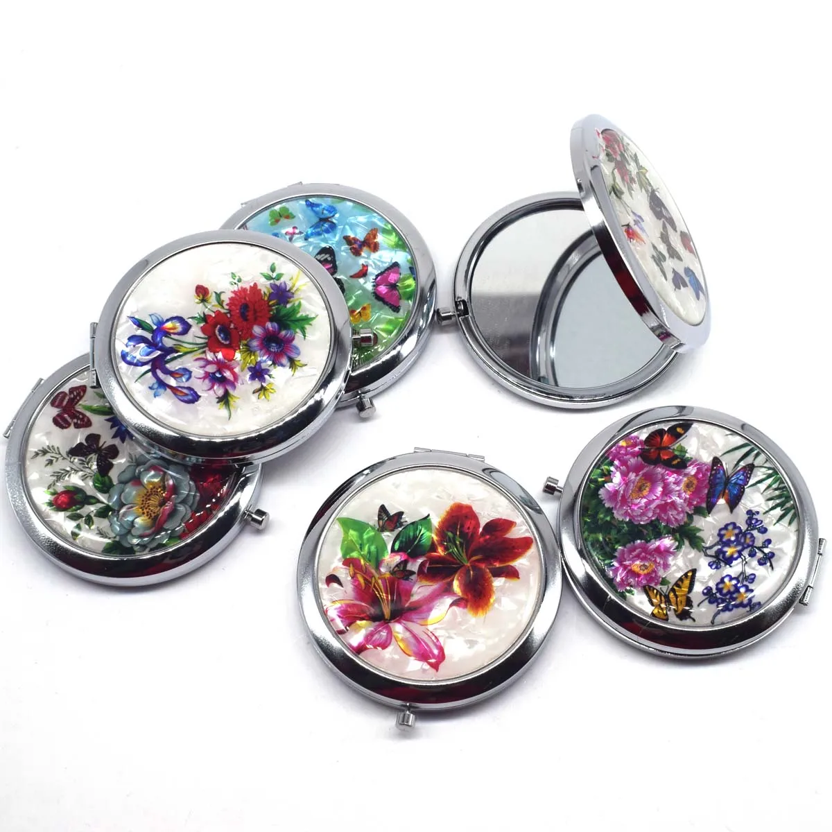 Компактное Карманное мини-зеркало для макияжа, Бамбуковая металлическая портативная двухсторонняя Складная винтажная Косметика с цветком, бабочкой