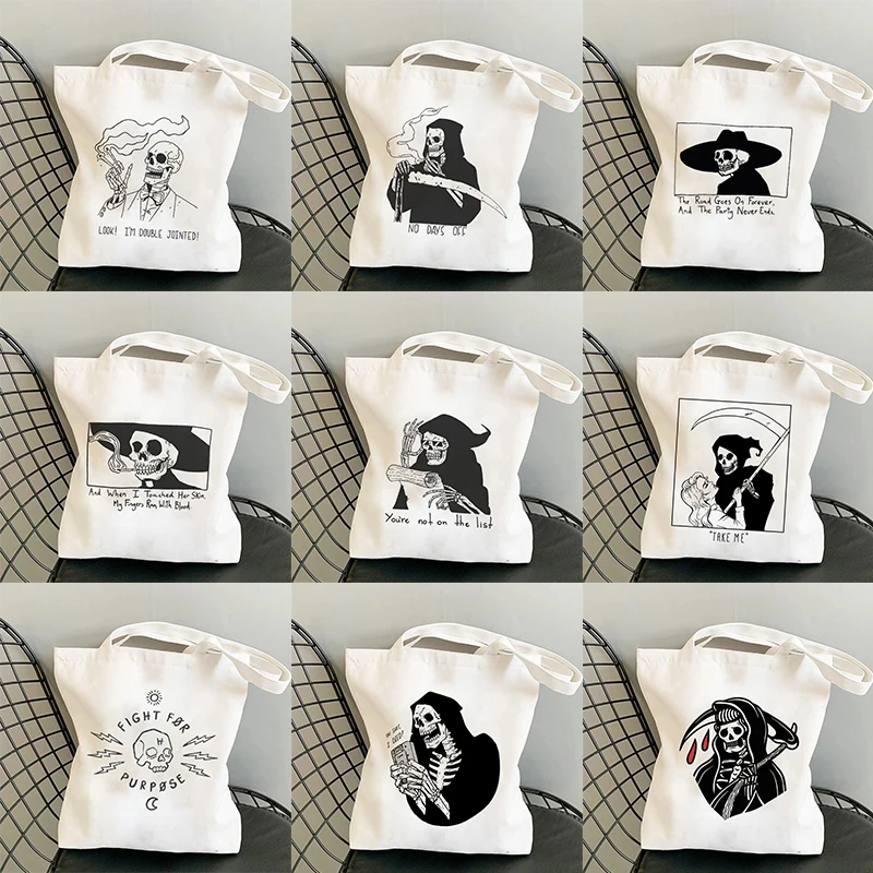 Забавные сумки-шопперы для Хэллоуина, сумки-тоуты, сумки на плечо, Повседневная сумка для покупок, Женская Холщовая Сумка с черепом, школьная сумка для девочек