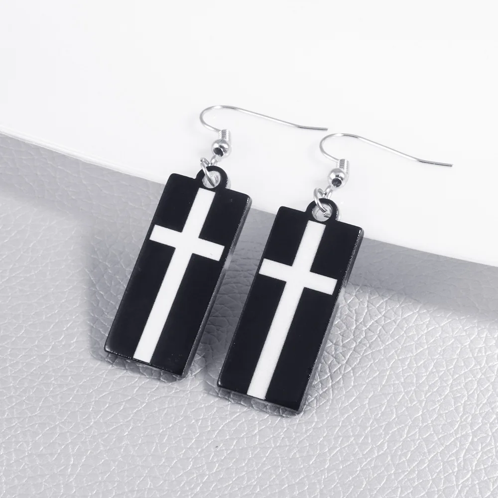 Серьги-подвески с черным крестом из акриловой смолы для косплея