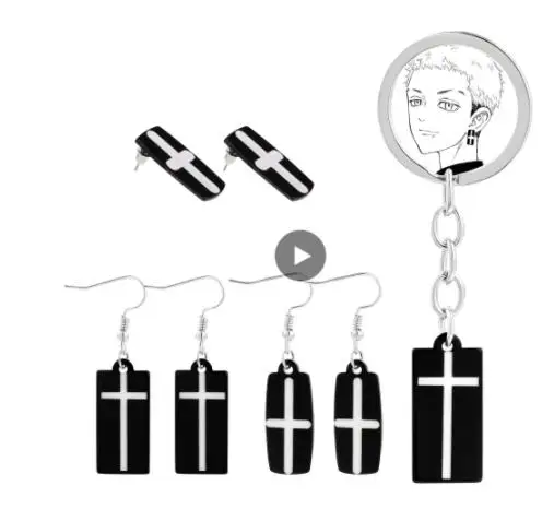 Серьги с аниме Токио, Мстители Токио, мицуя Такаси, ожерелье, брелок, простой крест, мультяшный персонаж, аксессуары