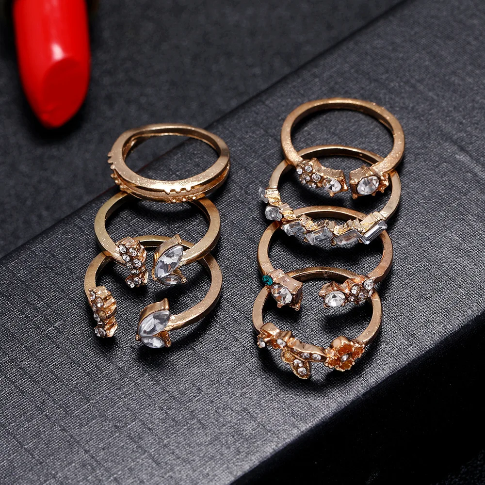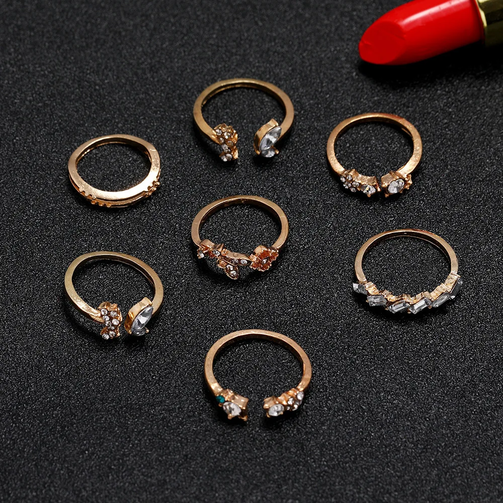 Набор колец в винтажном стиле для женщин, кольца в стиле бохо на костяшки пальцев, с кристаллами, бабочка, цветок, ювелирные аксессуары