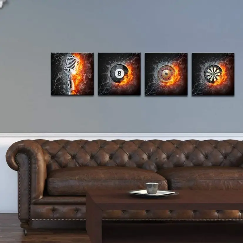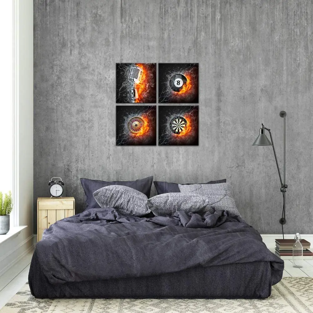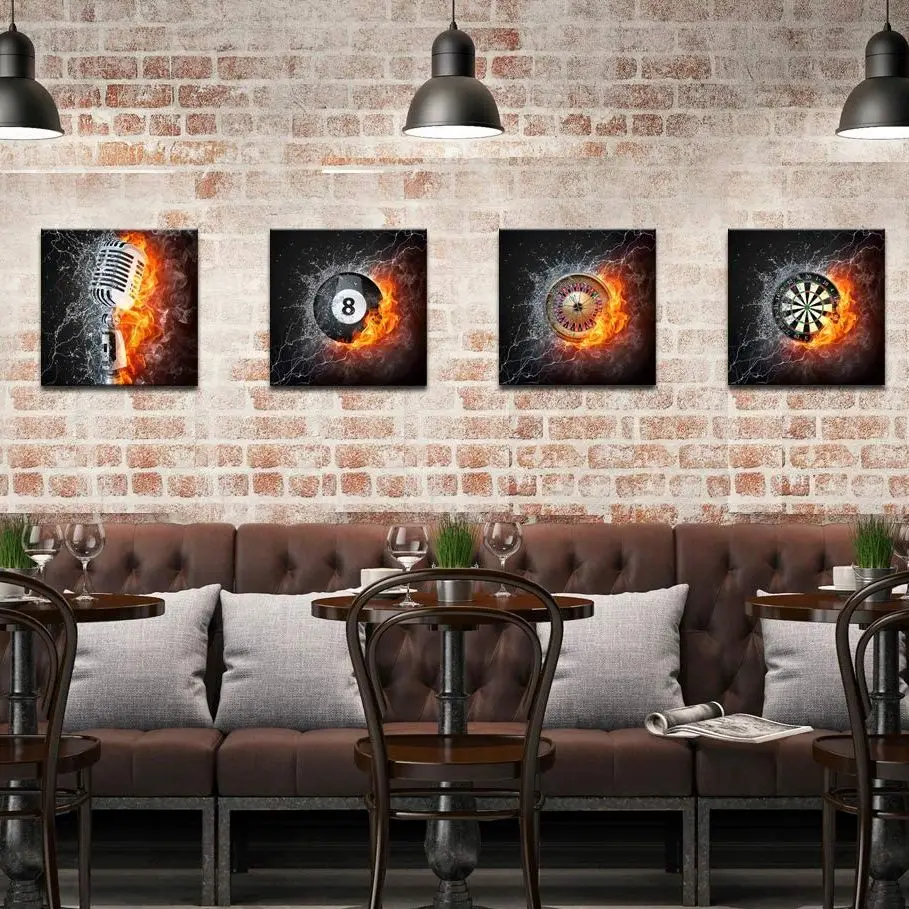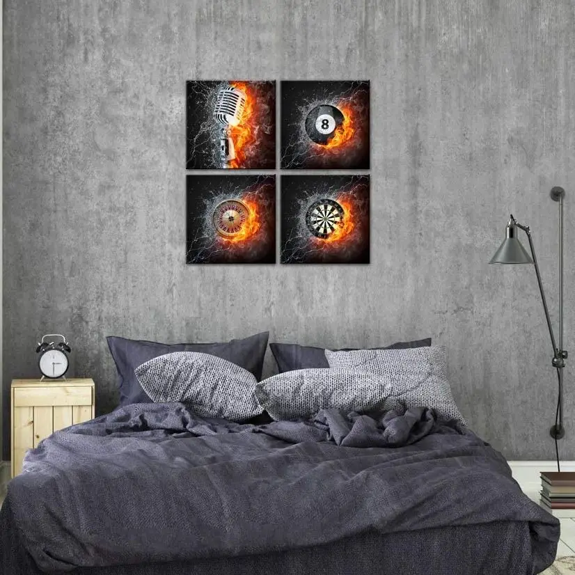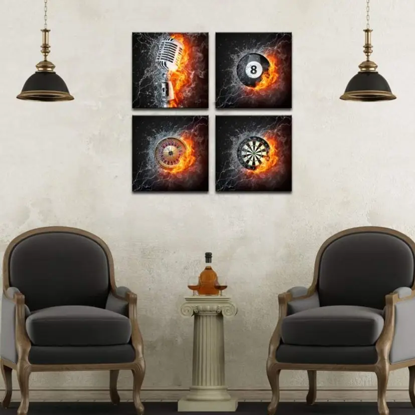 4 шт. огненный и водный микрофон дротики Бильярд КАЗИНО РУЛЕТКА плакаты холст картины настенное искусство домашний декор картины подарок