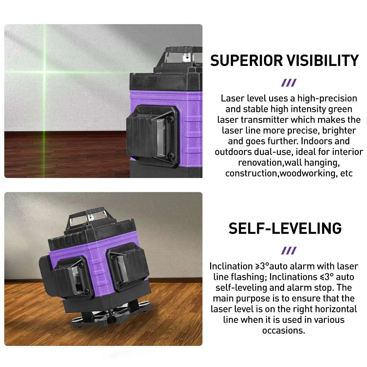 Самонивелирующийся лазерный уровень, 4D3D, 1612 линий, 360 градусов
