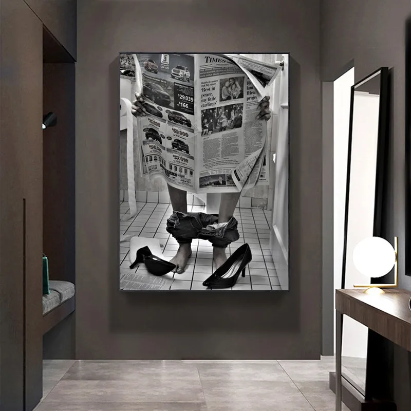 Модный Туалет сексуальная женщина Газета чтения винтажная картина плакаты современный бар черный белый девушка в комнате Настенный декор