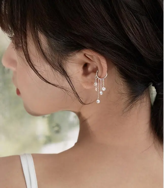 Женские круглые серьги-каффы с кисточкой и фианитом, без прокола, e...