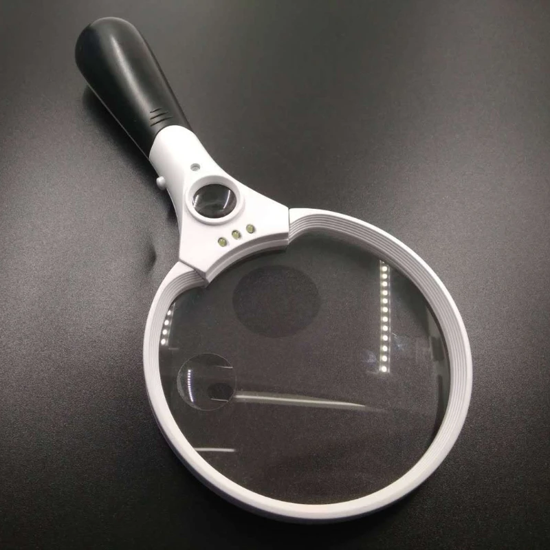 Увеличительное стекло 066E с 3 светодиодный ными лампами, ручная Лупа с подсветкой, увеличительное стекло для чтения, совместимое с пожилыми людьми