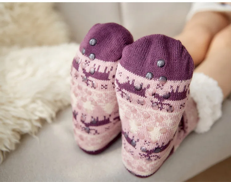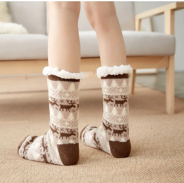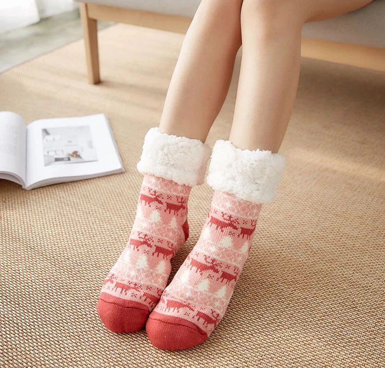 Носки рождественские женские, носки до середины икры для комнаты, домашние тапочки для сна, нескользящие носки, утепленный ковер на флисовой подкладке