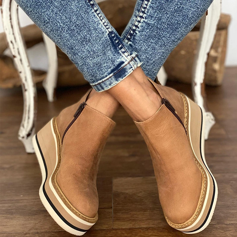 Женские ботинки на платформе с молнией сбоку, однотонные повседневные ботинки на танкетке, сезон осень 2021