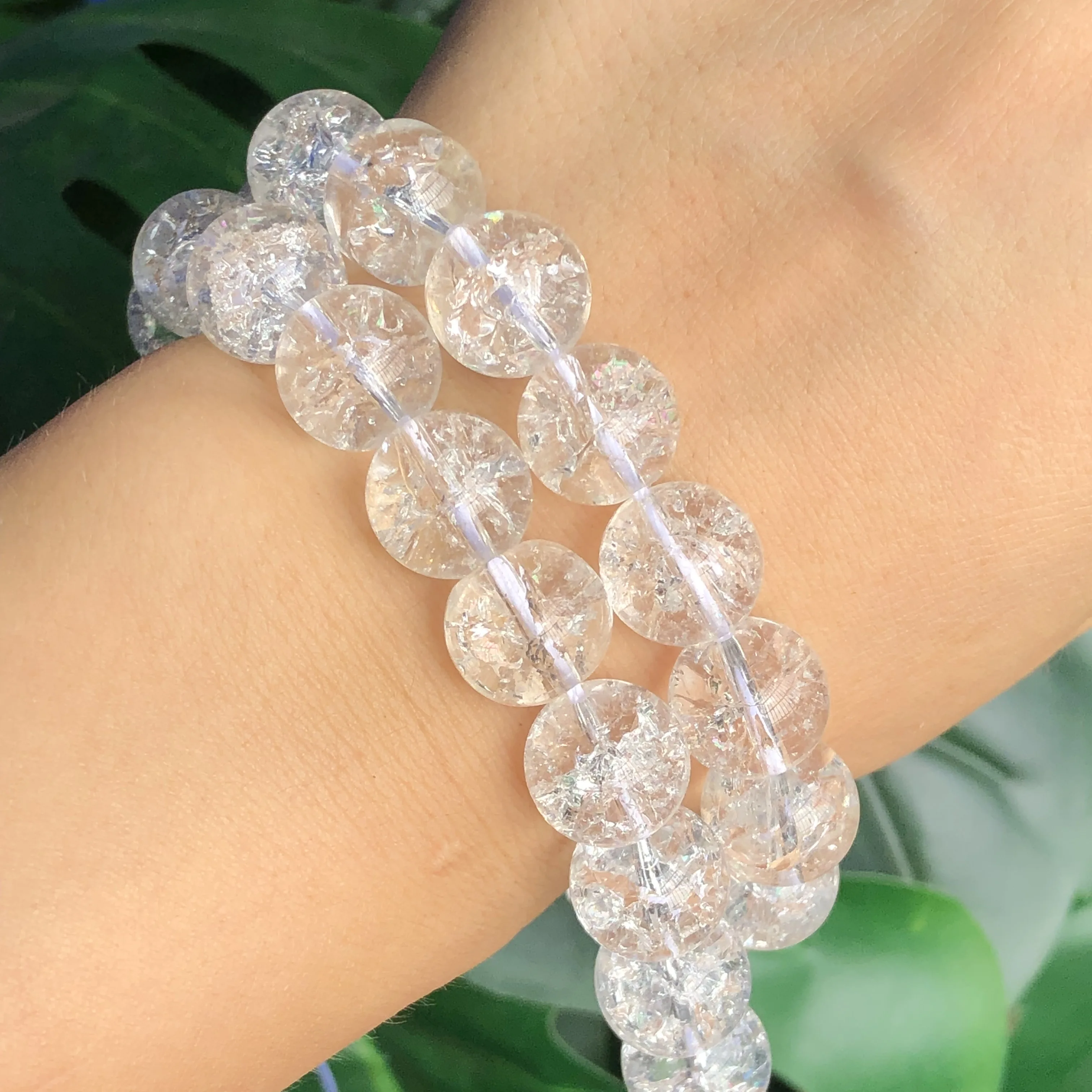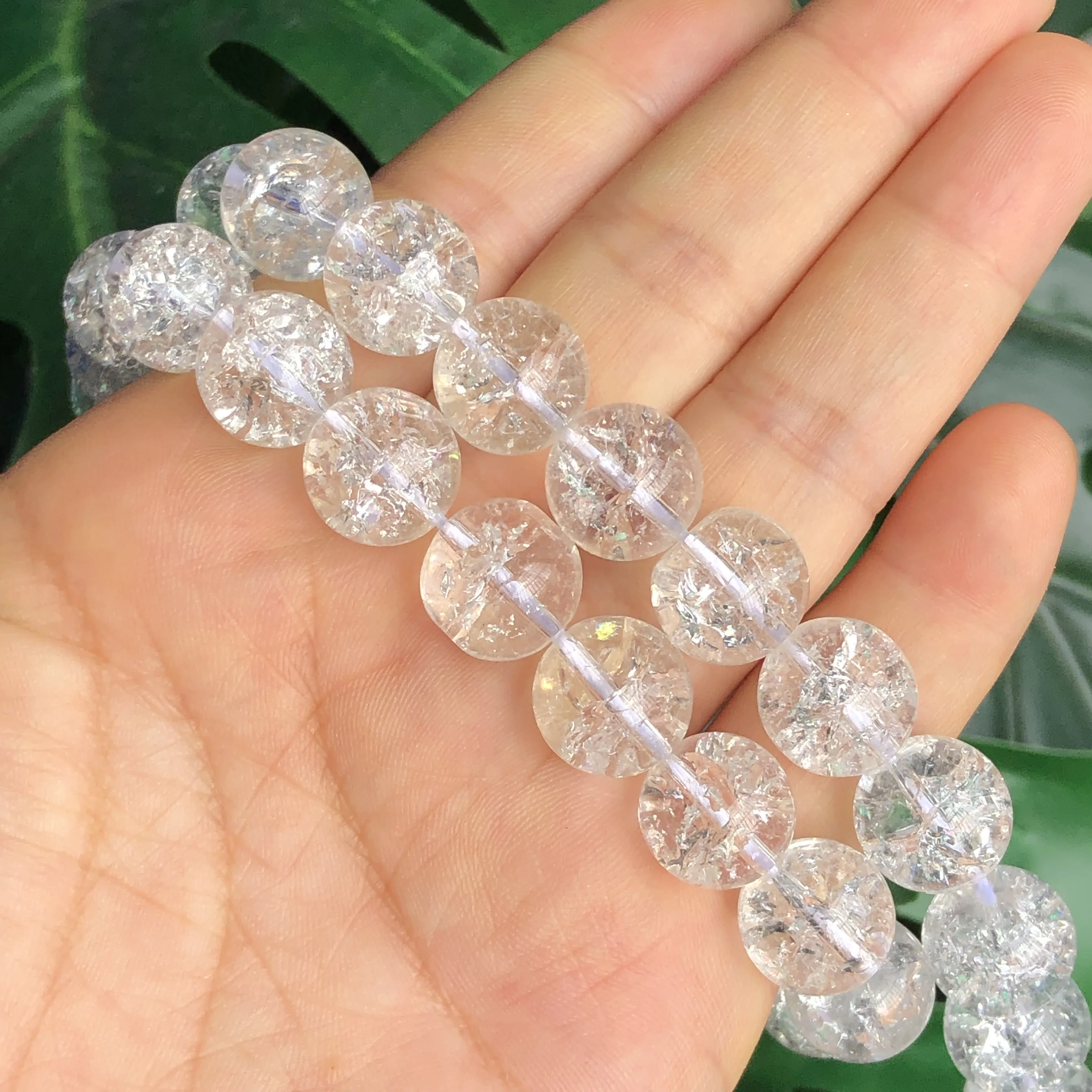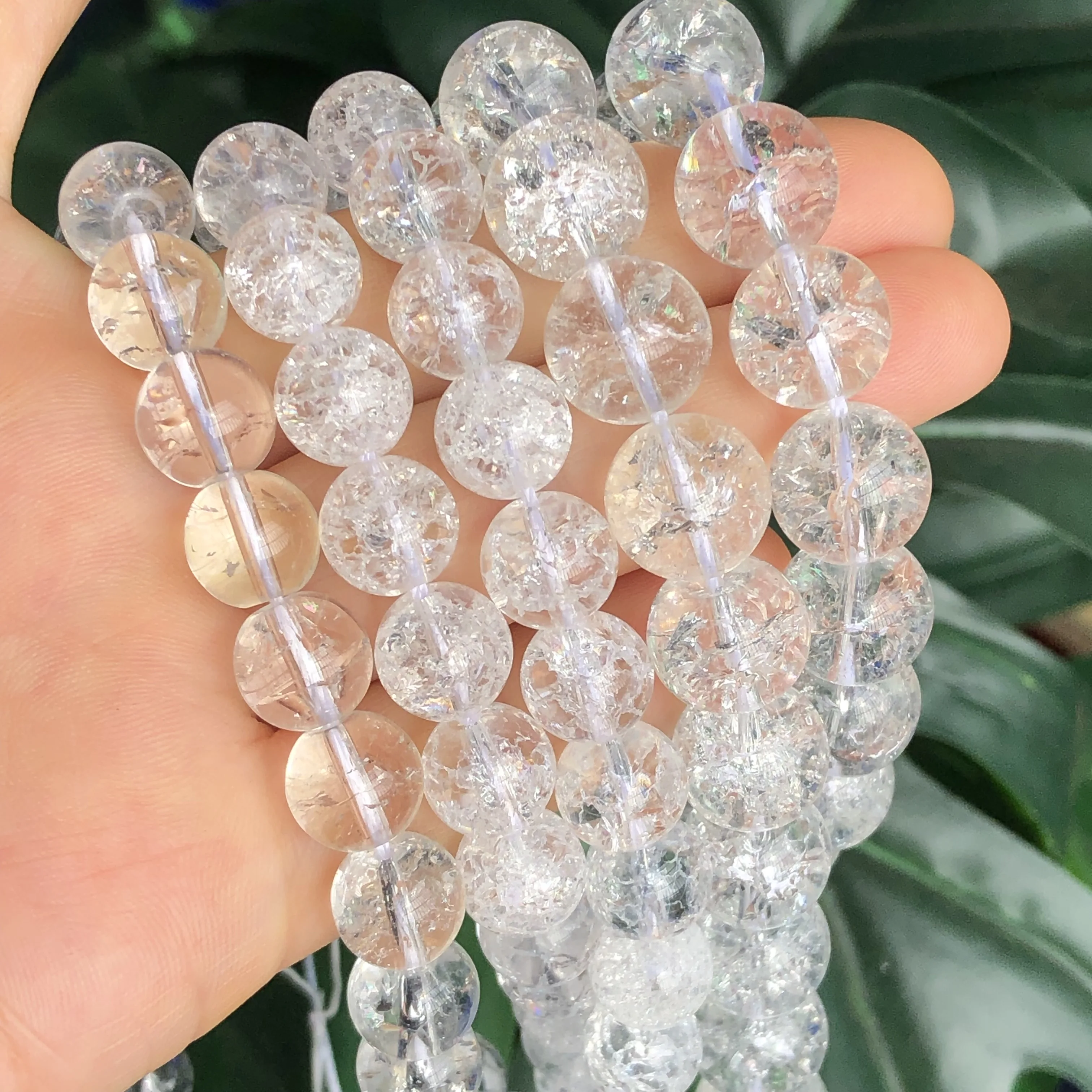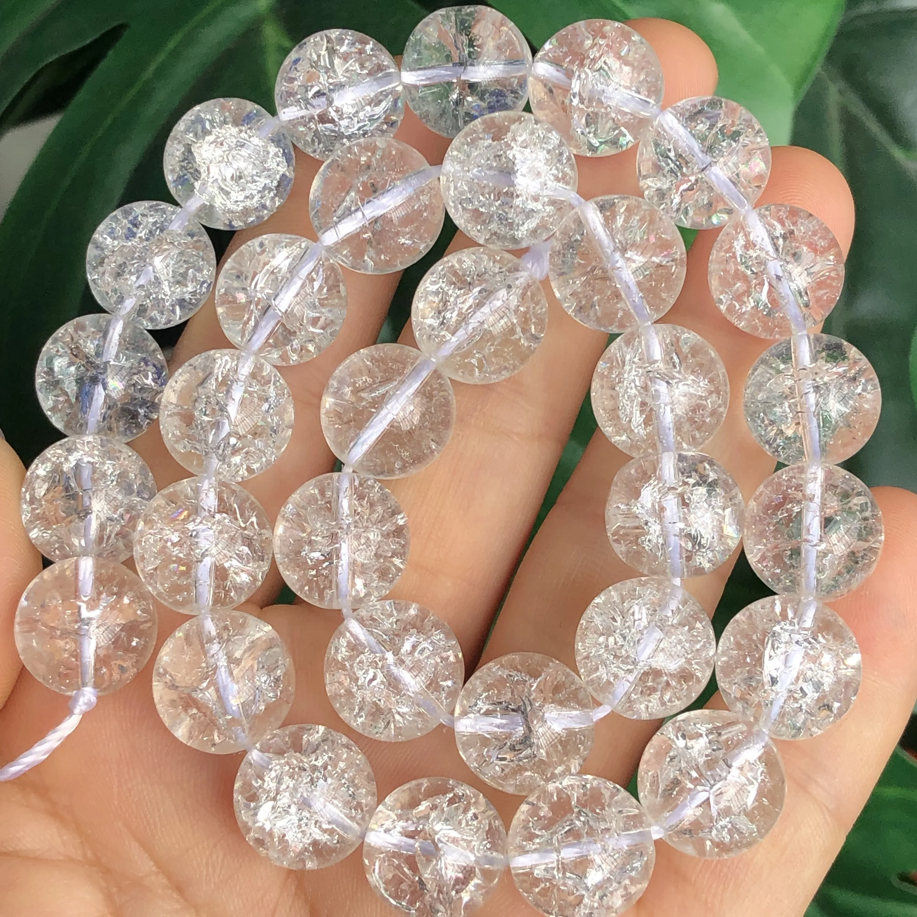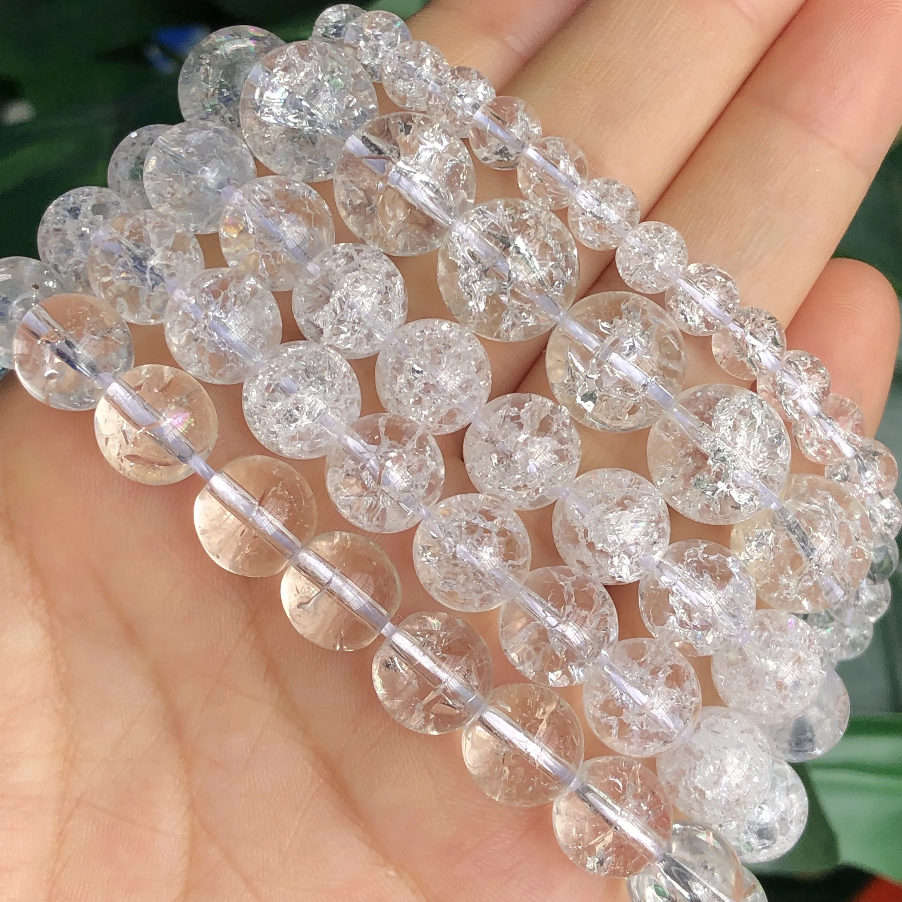 Круглый треснувший Кристалл из натурального прозрачного белого кварца, россыпью каменные бусины-разделители, для изготовления ювелирных изделий, браслетов, ожерелий, 681012 мм