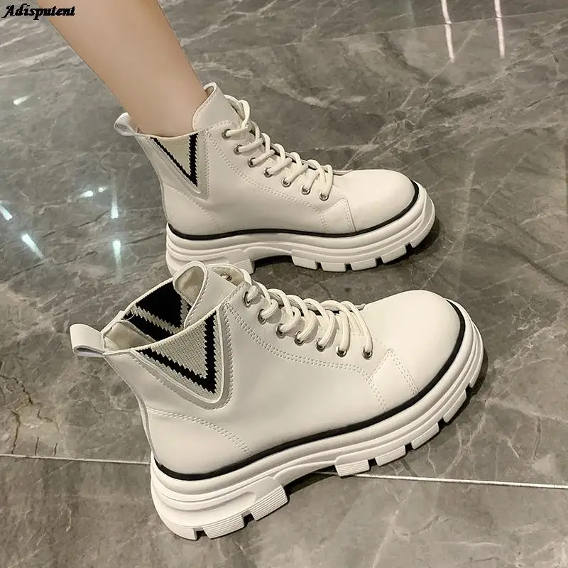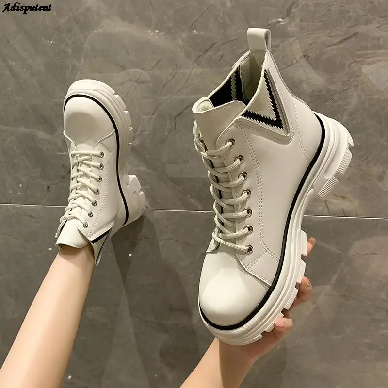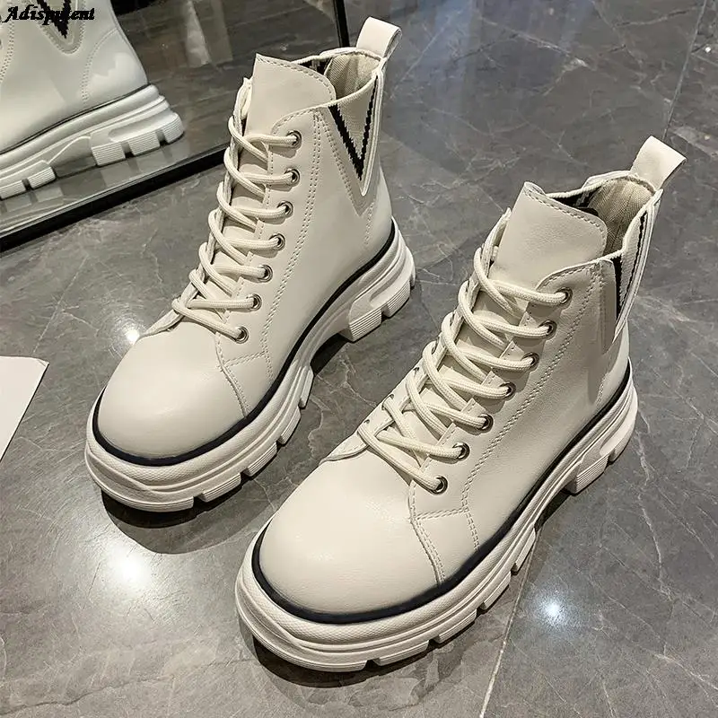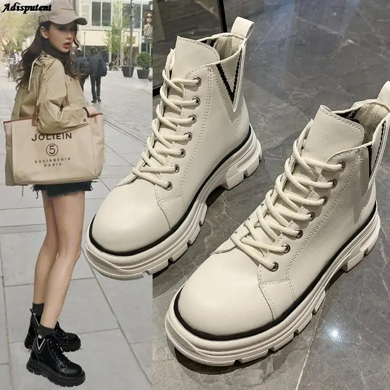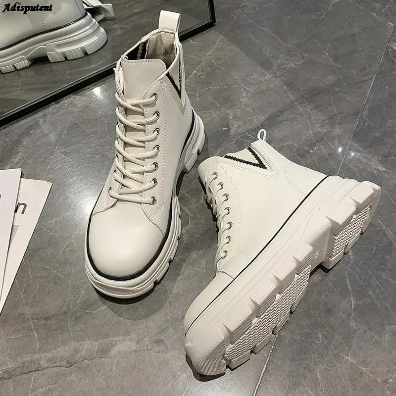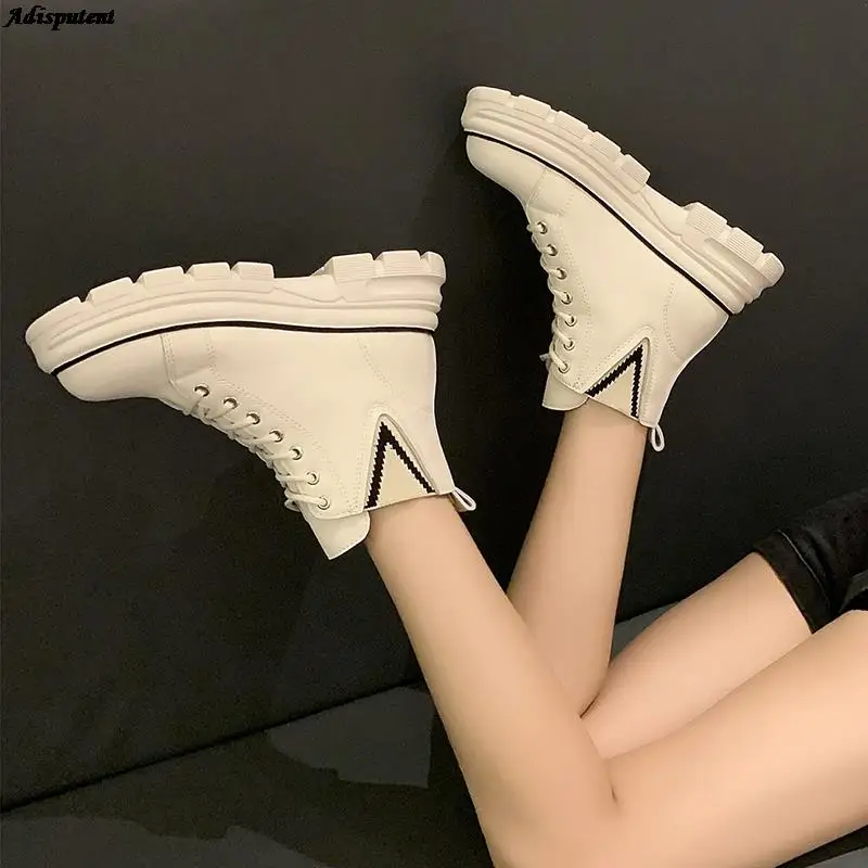Мотоциклетные ботинки для женщин, боевые ботинки на шнуровке, женская обувь на платформе, кожаные ботинки Martin, британский стиль, полусапожки для женщин