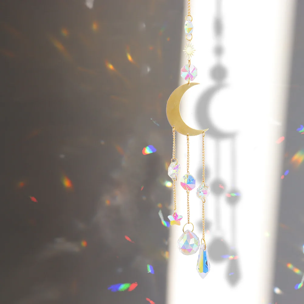 Хрустальные ветряные колокольчики, подвеска звезда, луна, солнце, Л...
