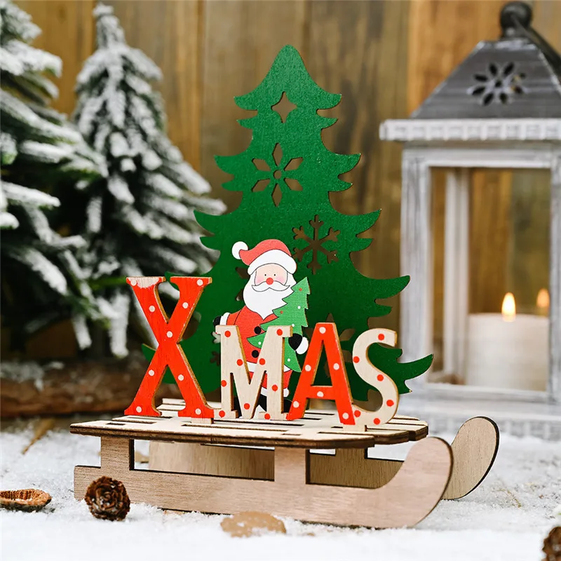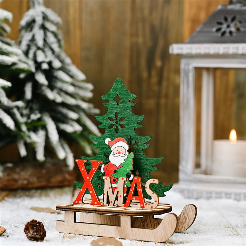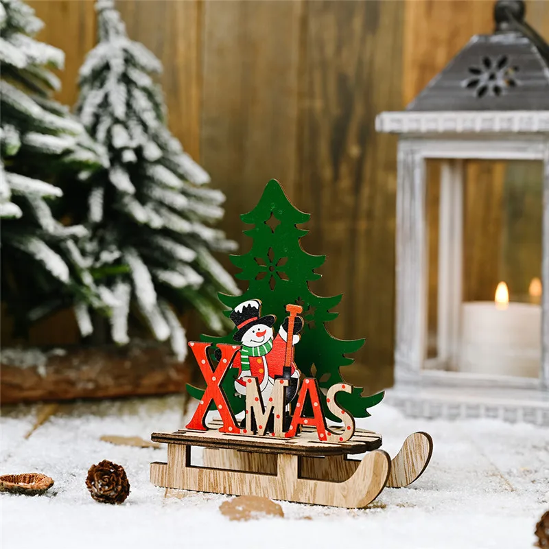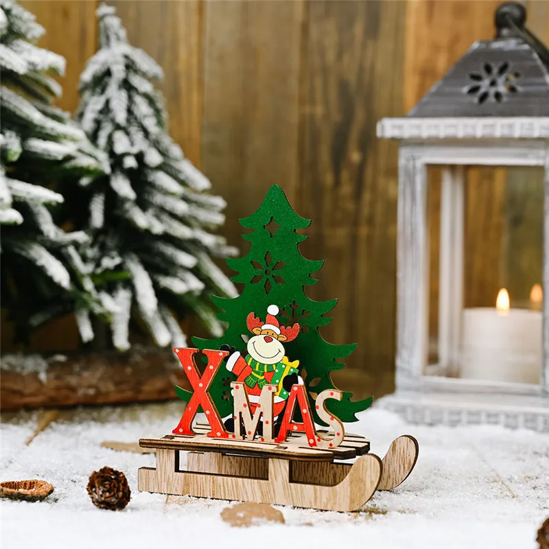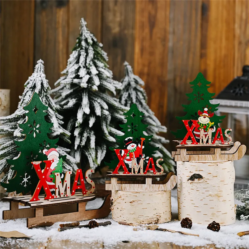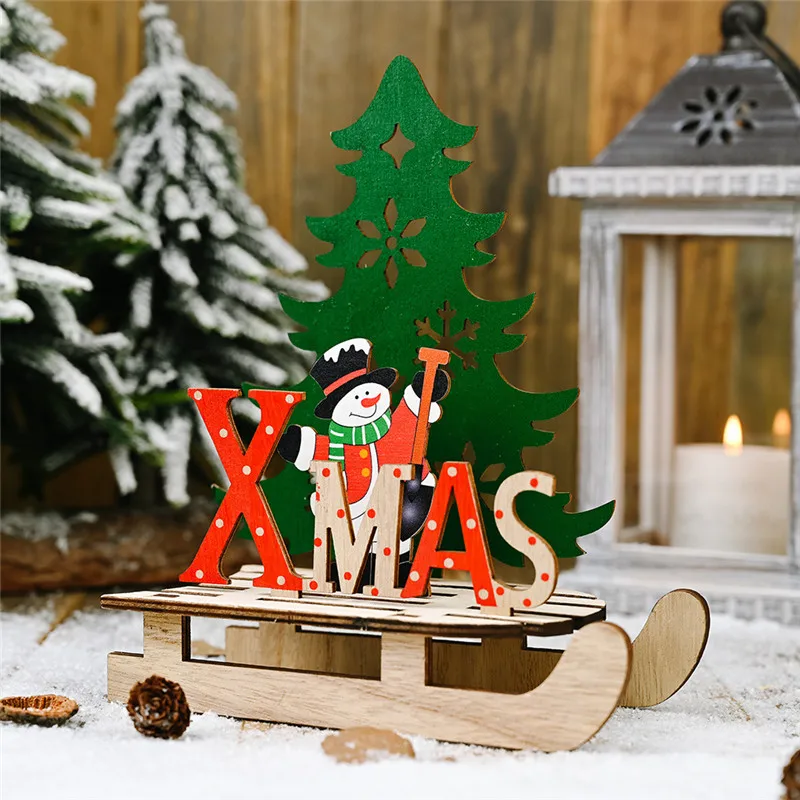 Рождественские украшения для дома, деревянные сани, декор для стола...
