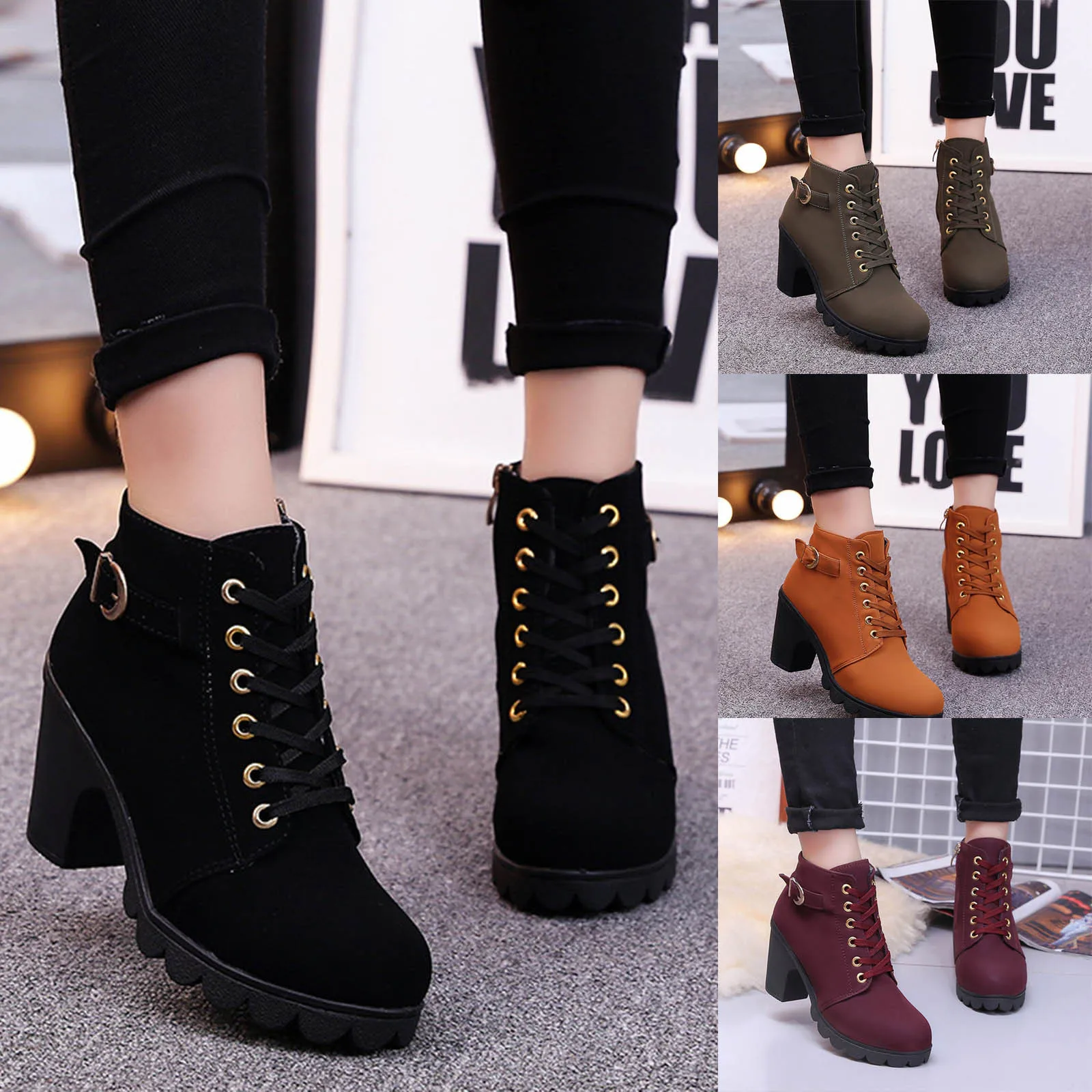 Женские мотоциклетные ботинки до щиколотки, на высоком каблуке, без застежки, с круглым носком, Осень-зима 2021