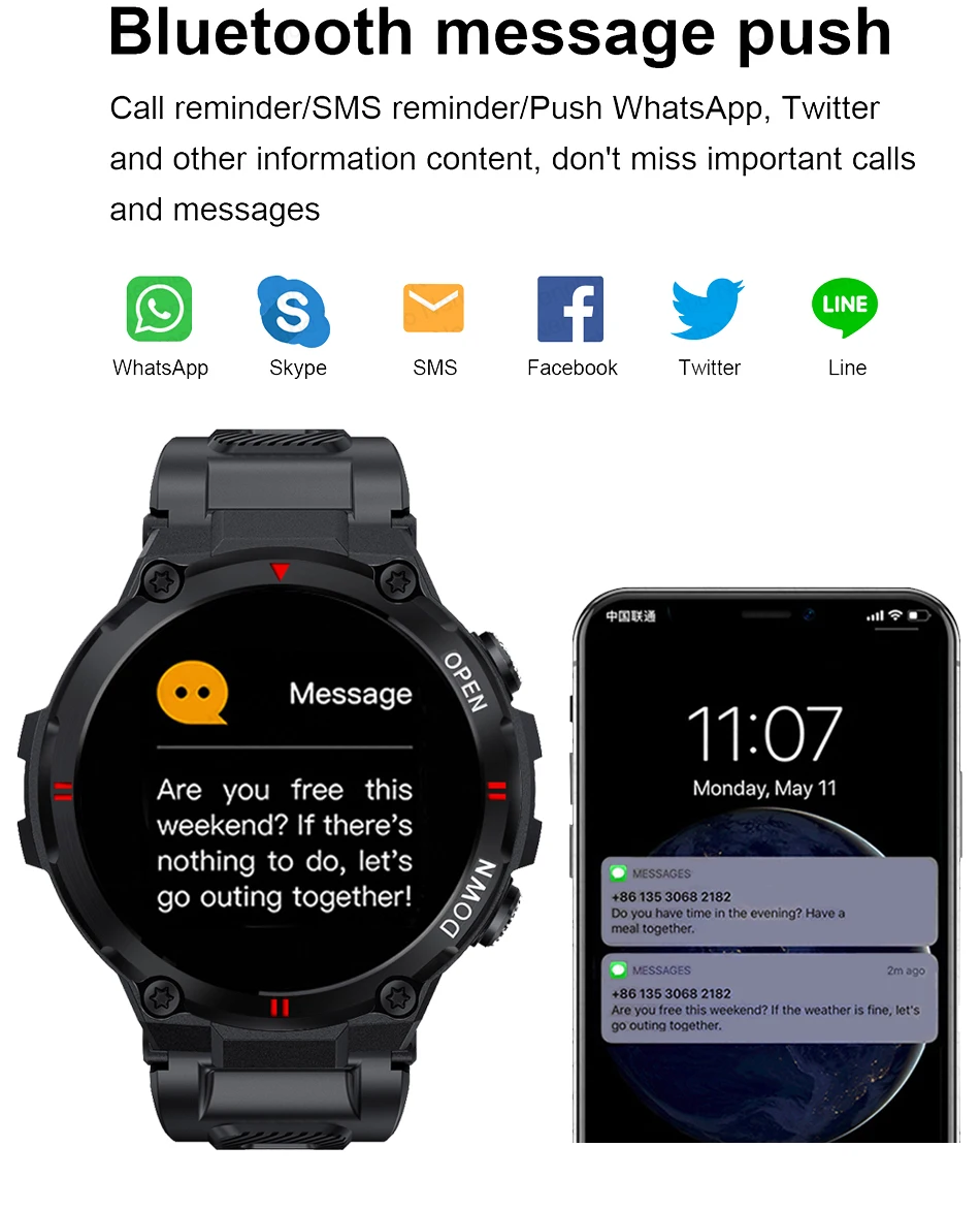 2022 K22 Смарт-часы мужские спортивные фитнес-трекер Bluetooth Вызов многофункциональный музыкальный контроль Будильник Напоминание мужские умные часы