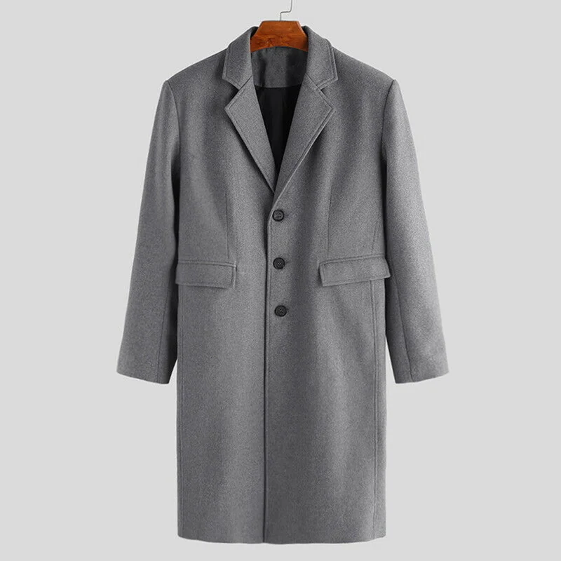 Мужской Длинный плащ, однотонная ветровка с лацканами, Осень-зима 2020