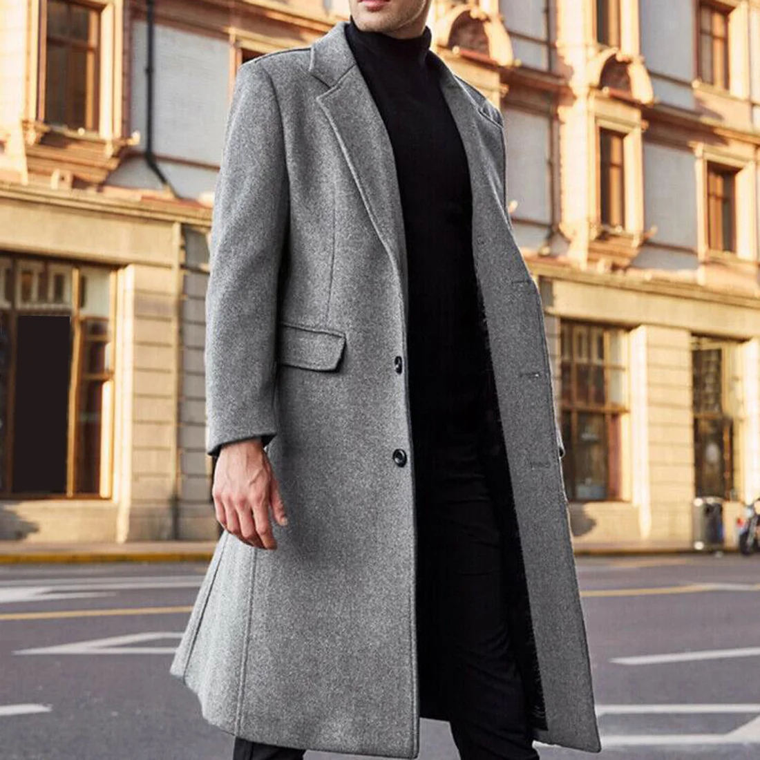 Осенне-зимнее мужское шерстяное пальто, однотонные шерстяные куртки...