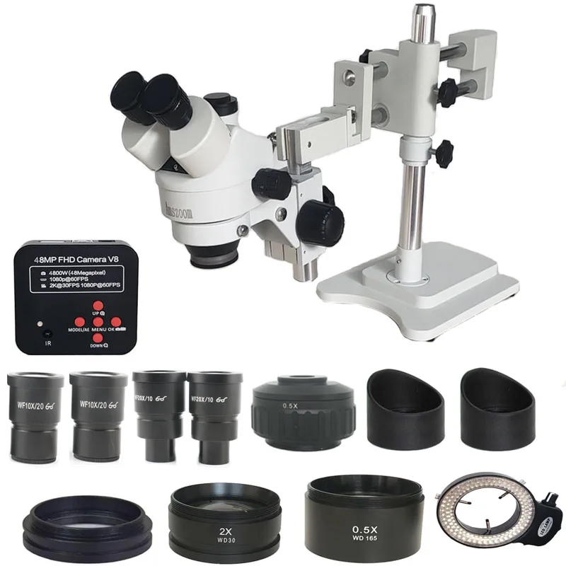 1x48 Мп HDMI VGA цифровой микроскоп1 двойная стойка1xFocus стеллаж для выставки товаров1 пара защитных очков1x144 шт. светодиодный светильник