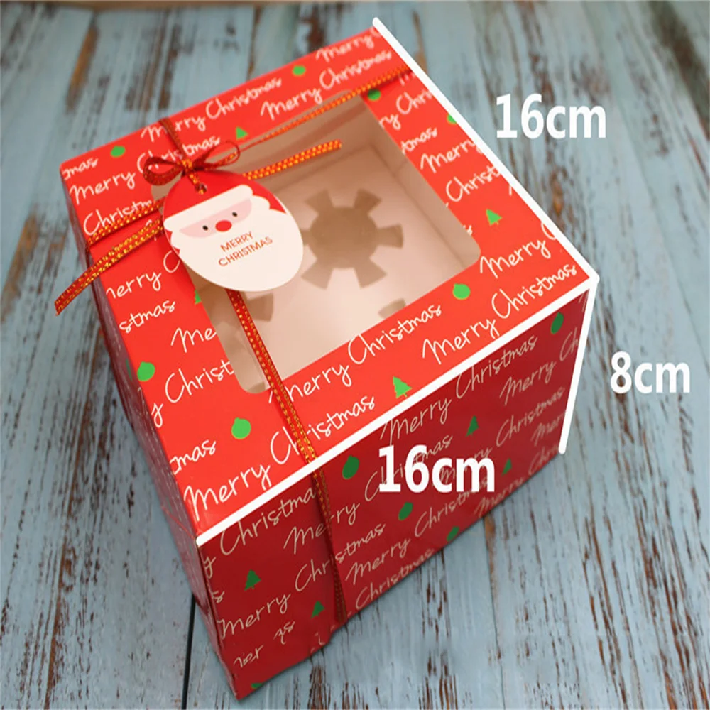 Коробка для упаковки торта, 4 чашки, Рождественское украшение, коробка для печенья, кекса, нуги, шоколада, игрушек, подарочная коробка