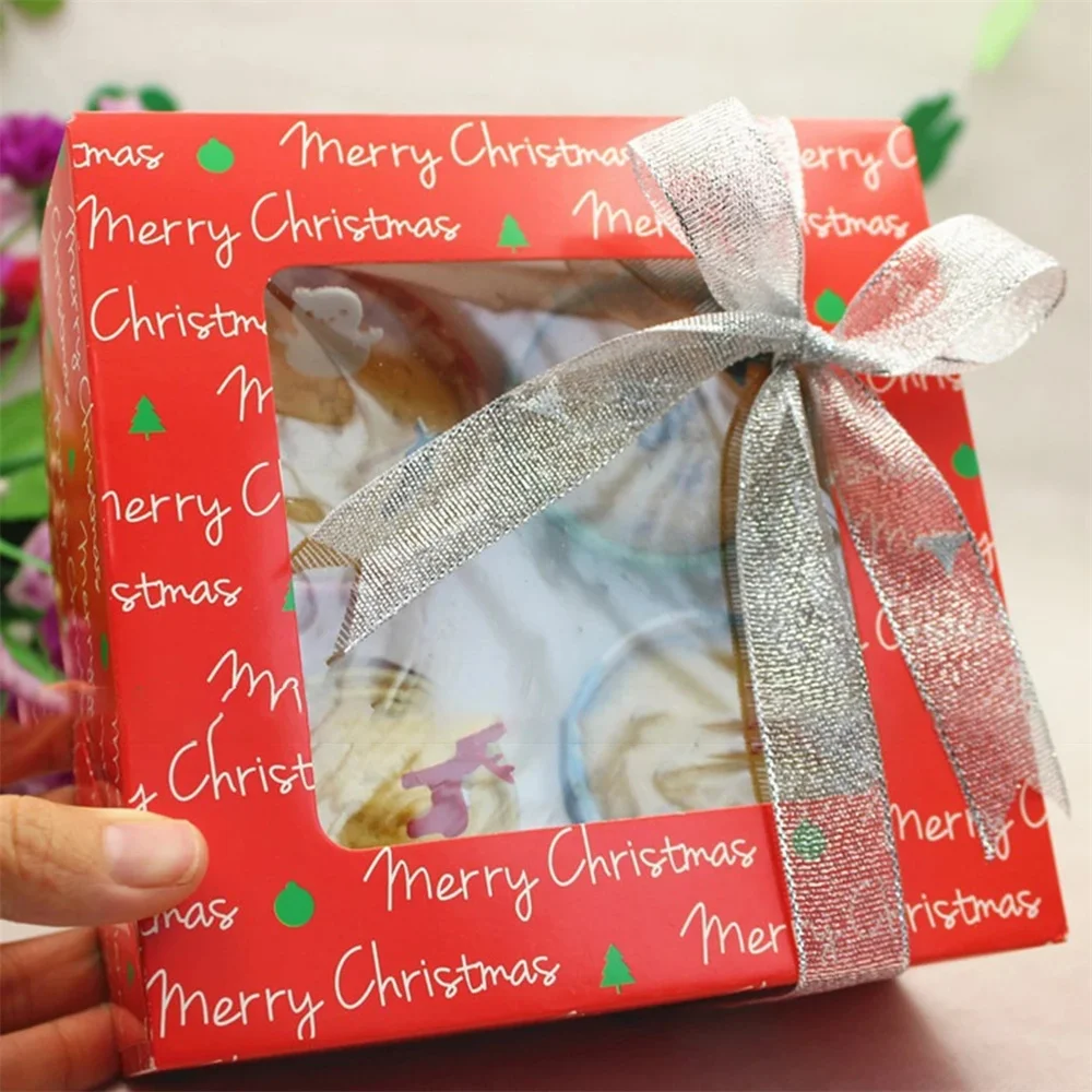 Рождественские картонные коробки для торта, 4 чашки, упаковочная ко...