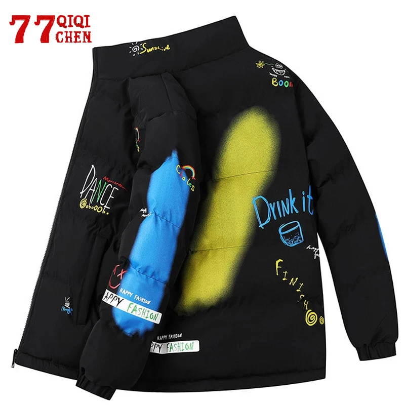 Мужская Утепленная двухсторонняя парка в стиле хип-хоп с принтом гр...