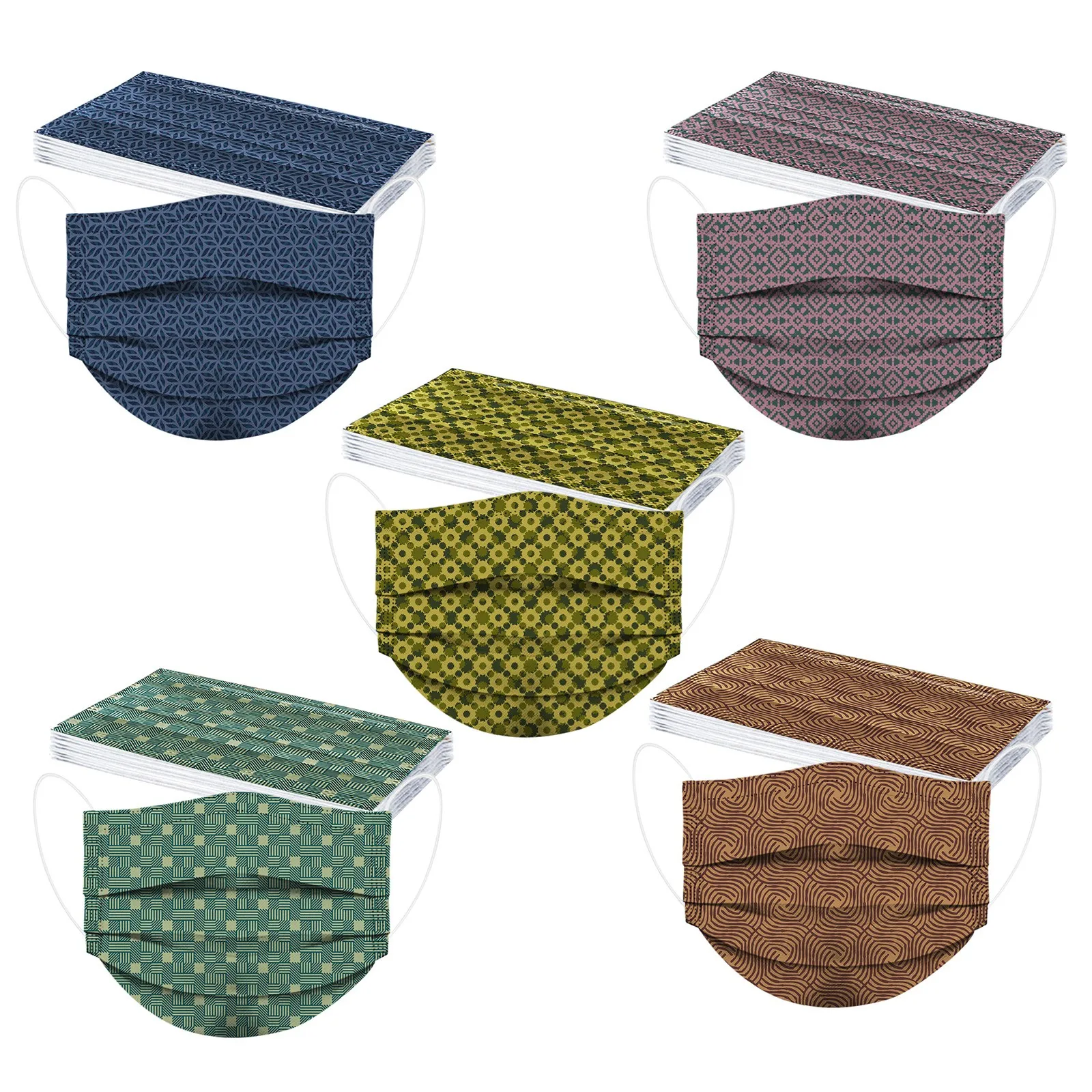 Маска для взрослых одноразовая унисекс, винтажная с геометрическим принтом, 3 слоя, маска для лица, маска для Хэллоуина