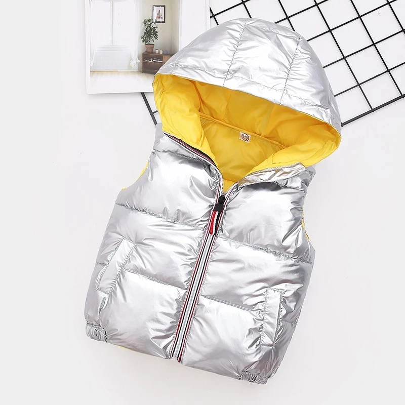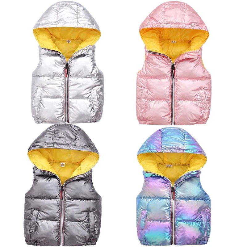 Детский жилет, верхняя одежда, одежда, осенне-зимние пальто без рукавов, Детский Теплый жилет с капюшоном из хлопка, блестящий пуховой жилет для маленьких мальчиков и девочек