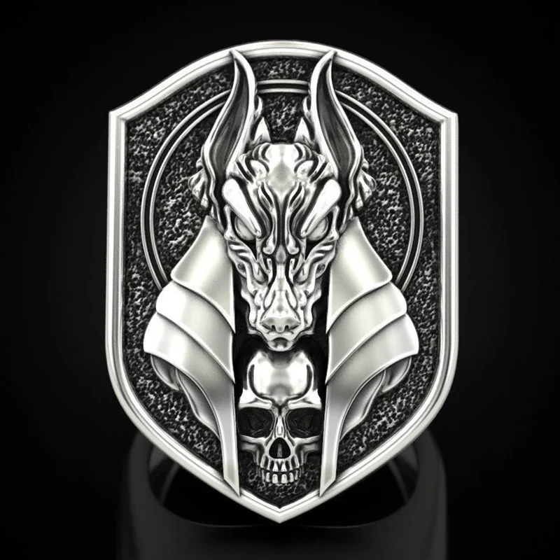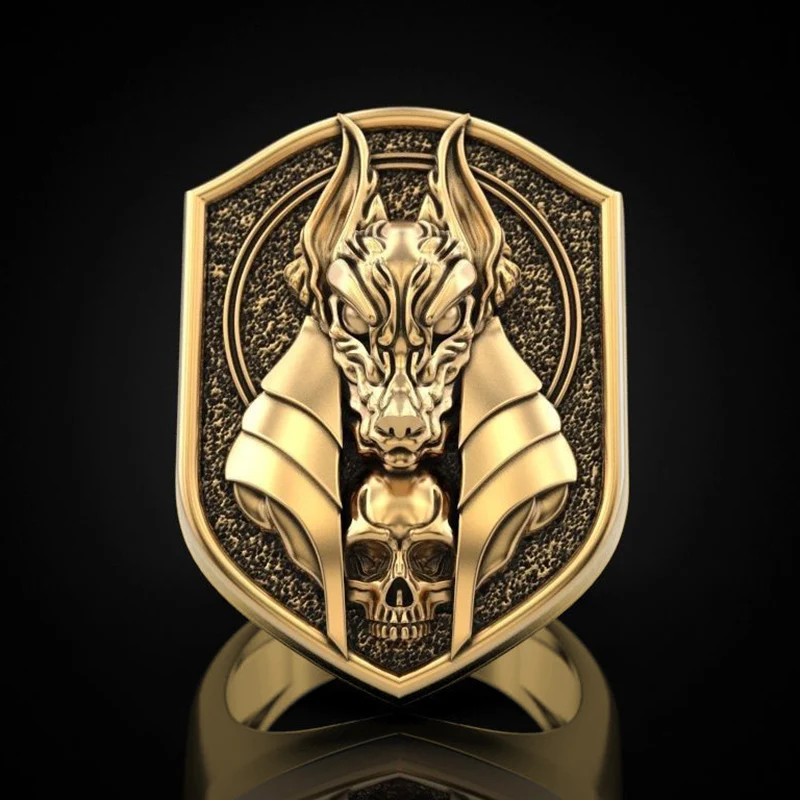 Новые винтажные золотые старинные египетские мифологические кольца бога смерти Анубис для мужчин модные ювелирные изделия голова Волка кольцо с черепом подарок Вечерние