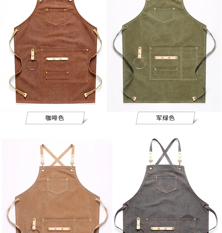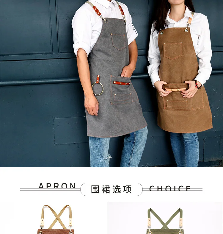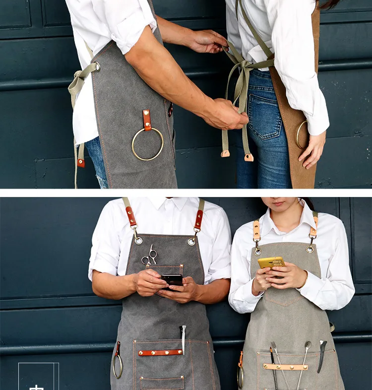 Слюнявчик кожаный парусиновый для мужчин и женщин, кухонный фартук шеф-повара, бариста, бариста, защитный передник с карманами для дома, парикмахера, кафе, ресторана