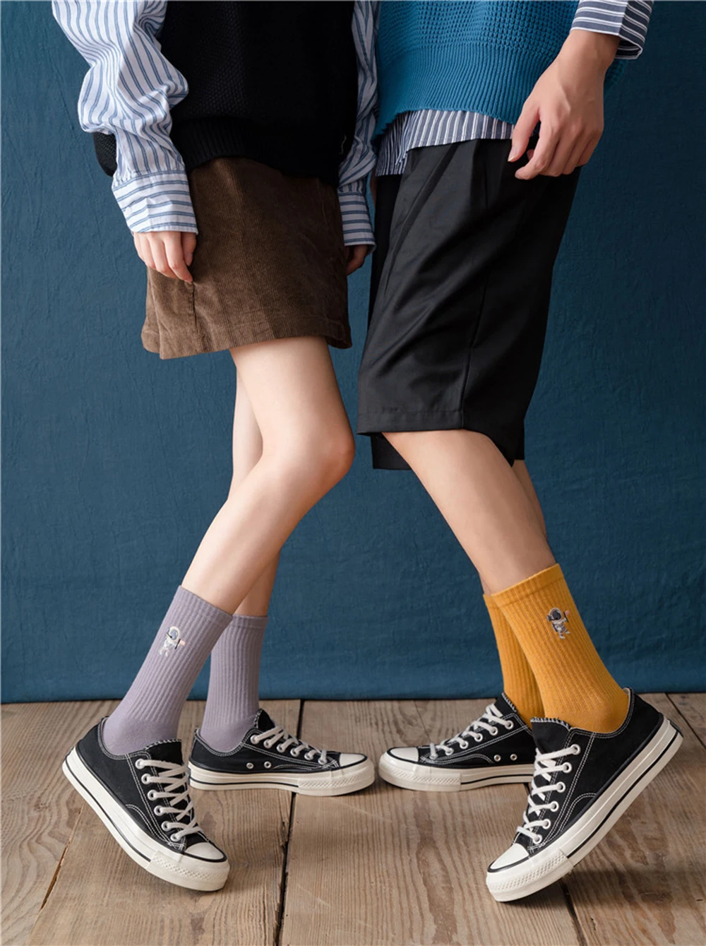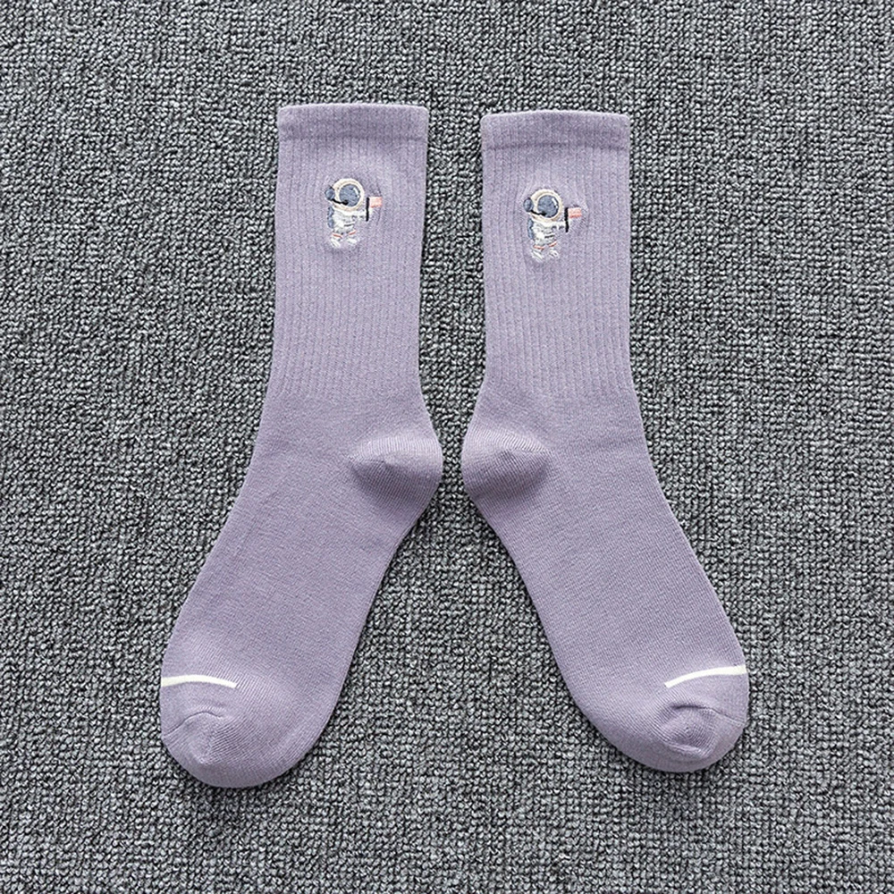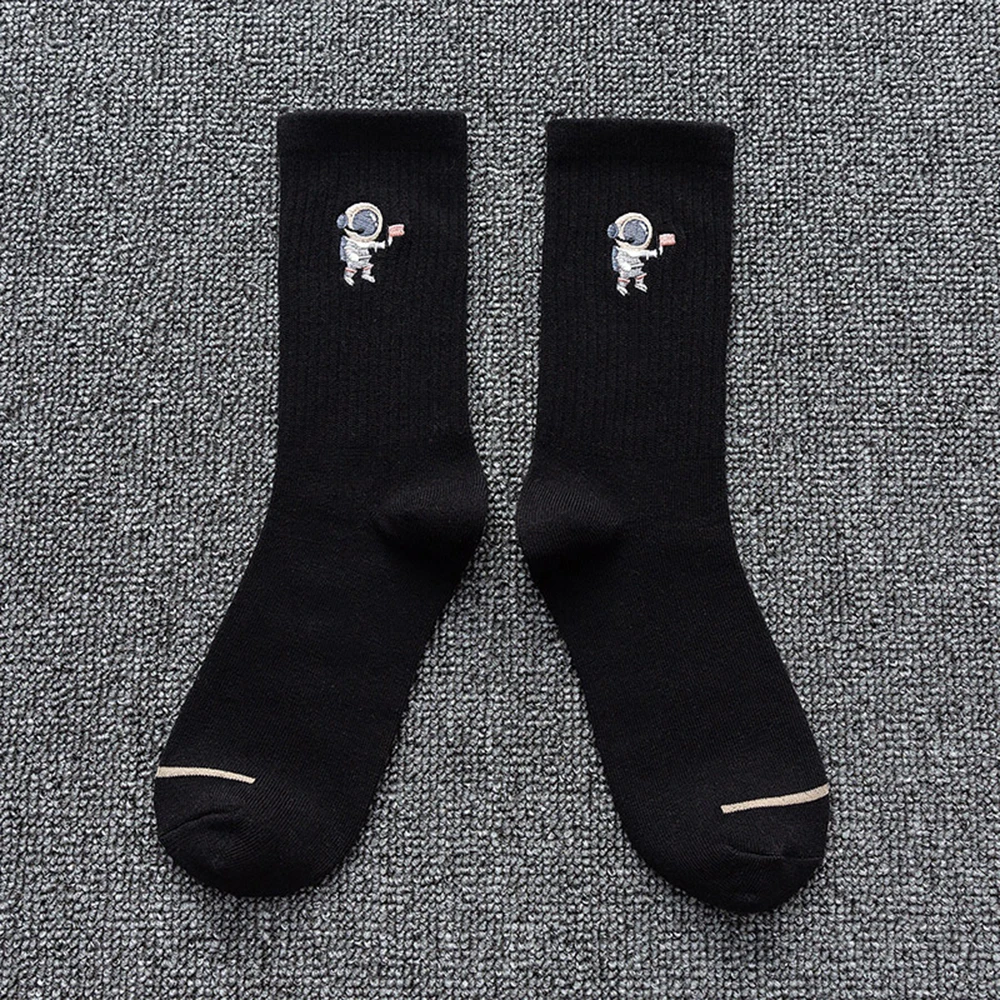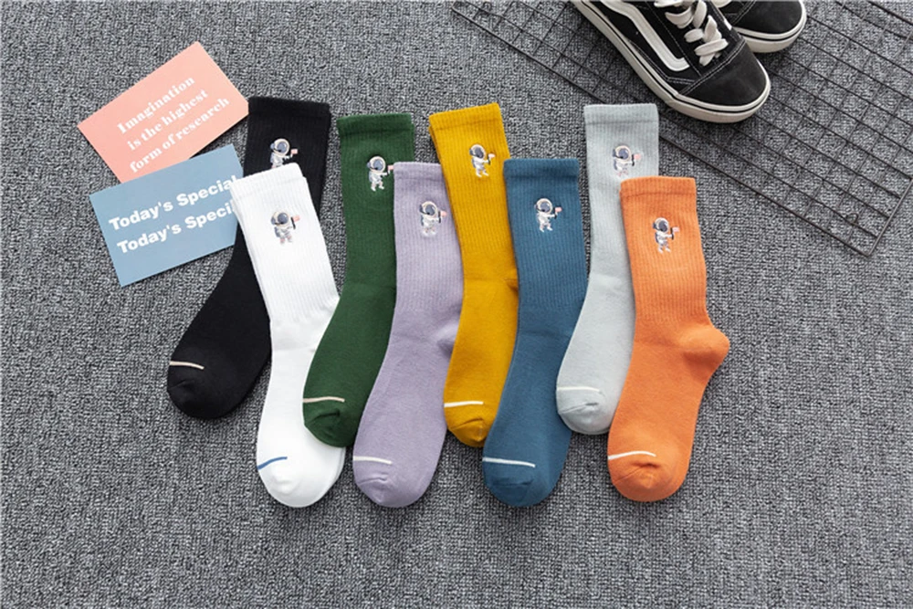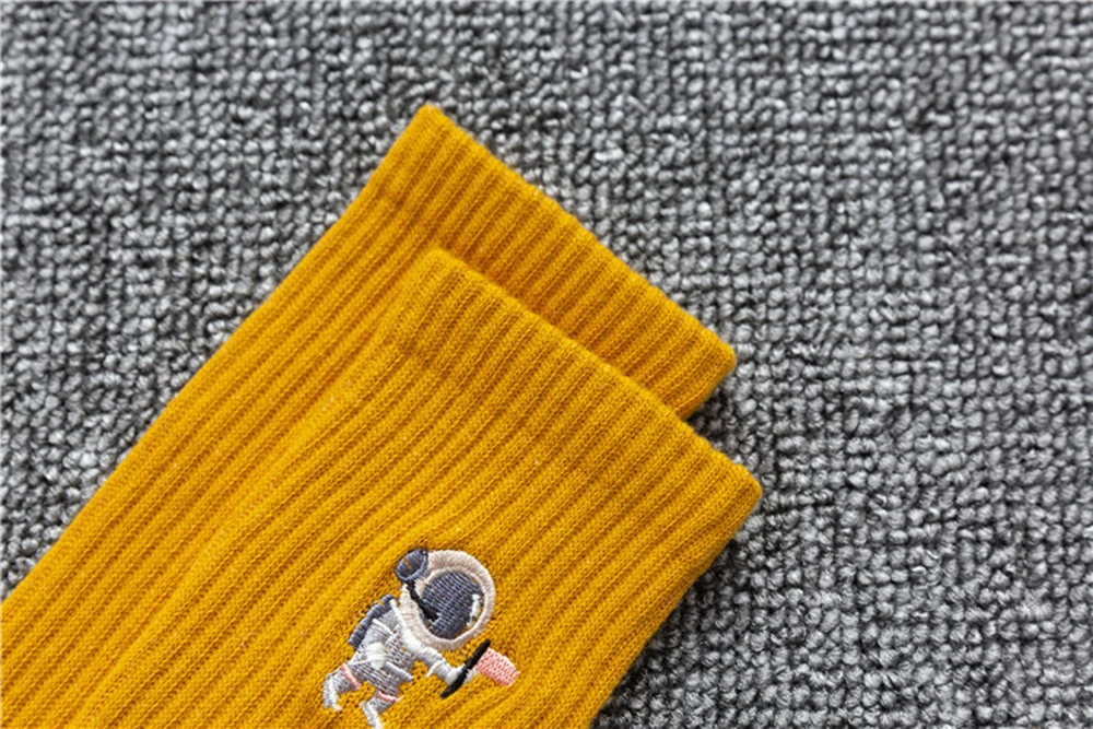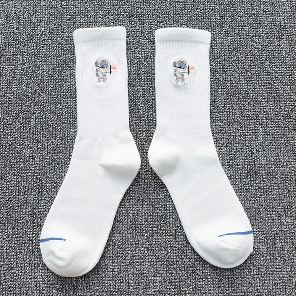 Модные женские и мужские вышитые хлопковые носки для пар астронавтов однотонные ранцевые спортивные носки средней длины высокого качества