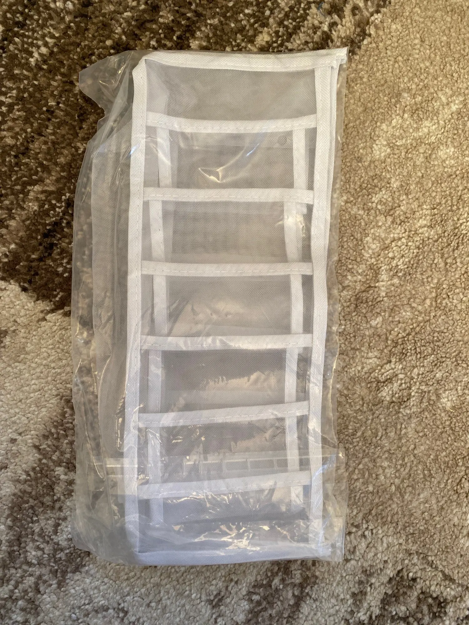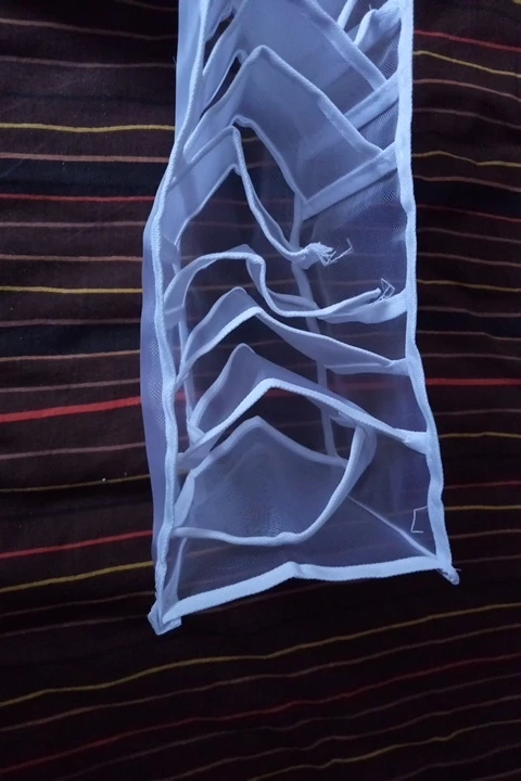 Получила очень быстро. За 10 дней. Для бюстгальтеров, толстых колготок и махровых носков не подходит, так как узкие деления. Качество плохое. Готовьте сразу нитки и иголку. Сострочено небрежно. Края не закреплены, сразу шов расползается. Зато дешево, удобно. В ящиках порядок. Несомненный плюс - это универсальность. Можно вложить в любой ящик, использовать не только для белья.