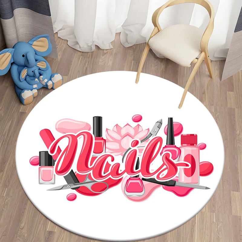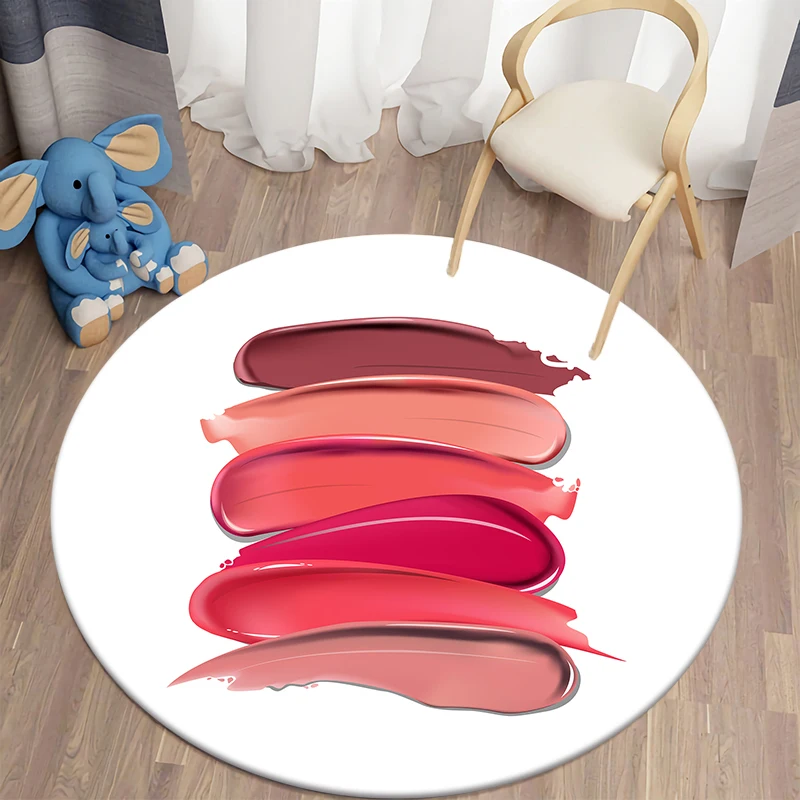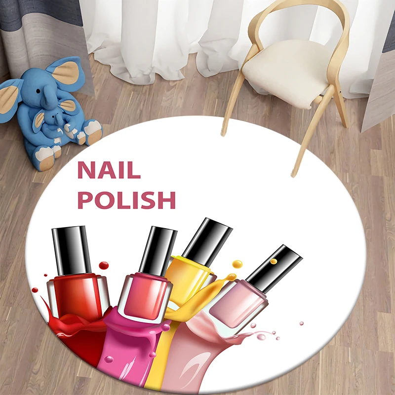 Круглый коврик для гостиной, с губной помадой и лаком для ногтей