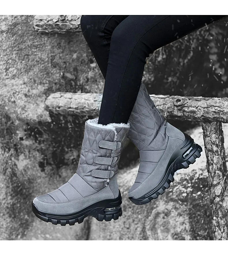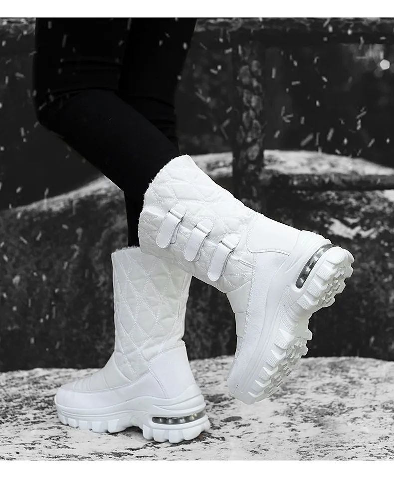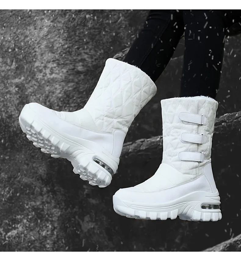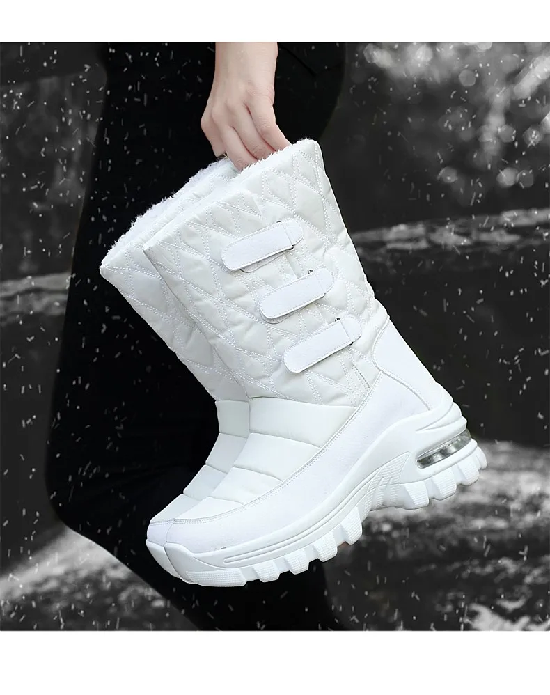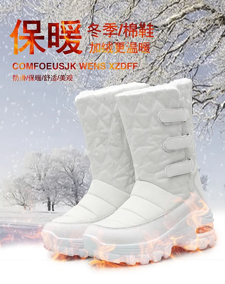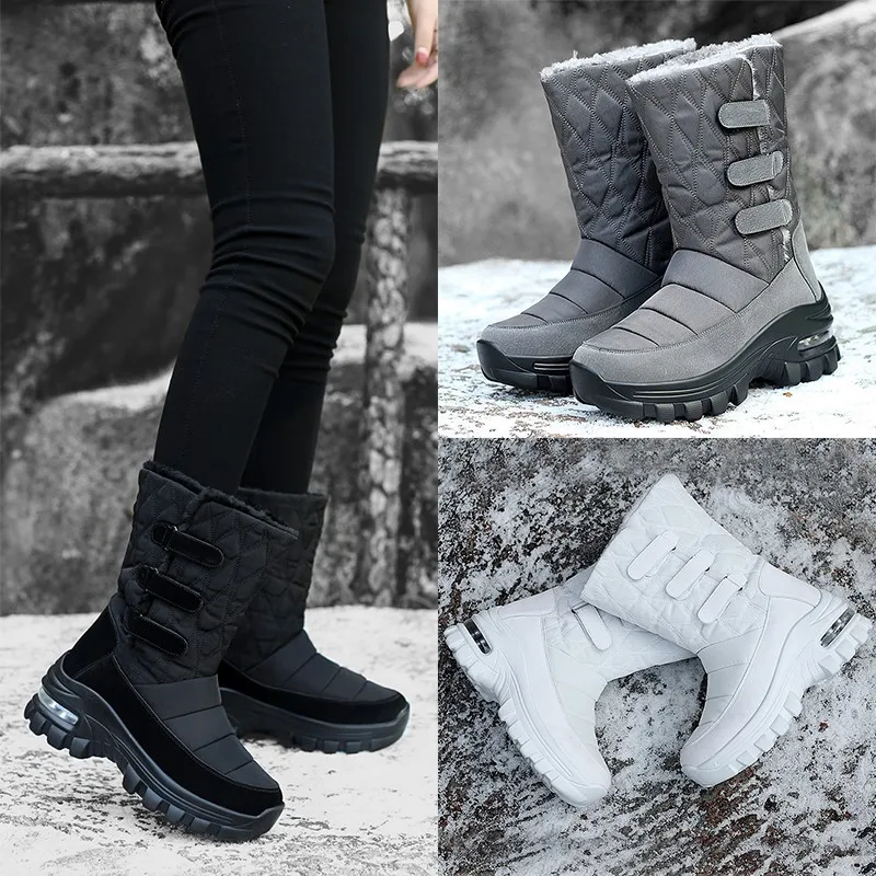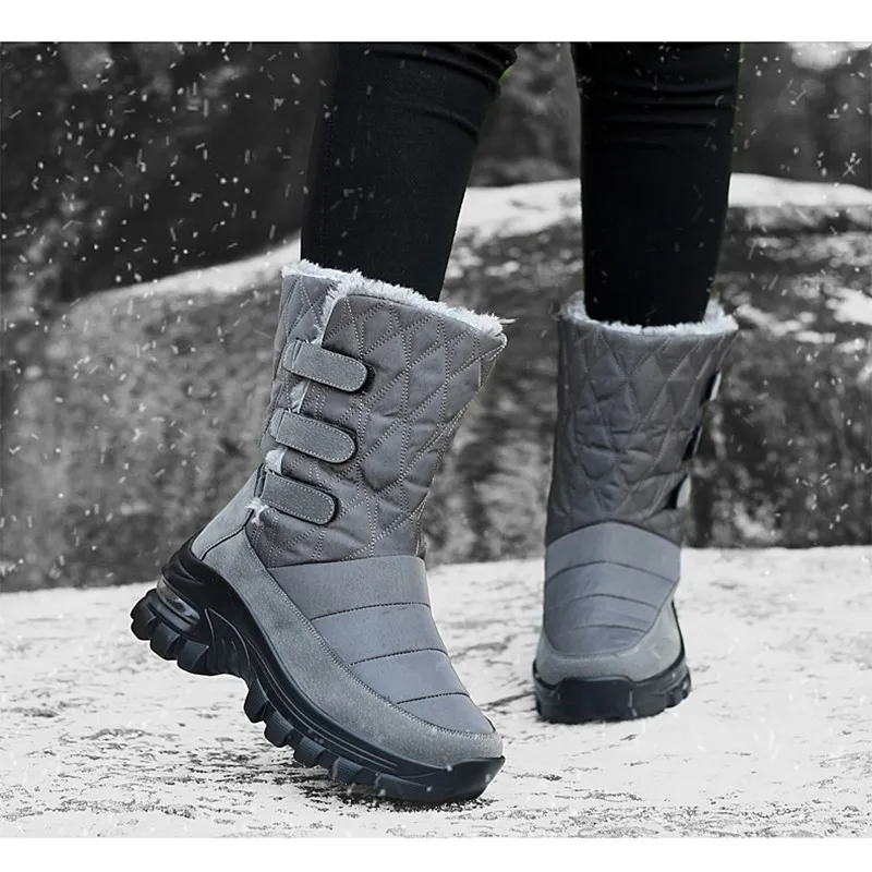 Женские ботинки телесного цвета, зимние Бархатные Теплые ботинки для снега, водонепроницаемые простые уличные ботинки на нескользящей платформе для отдыха, Женская хлопковая обувь