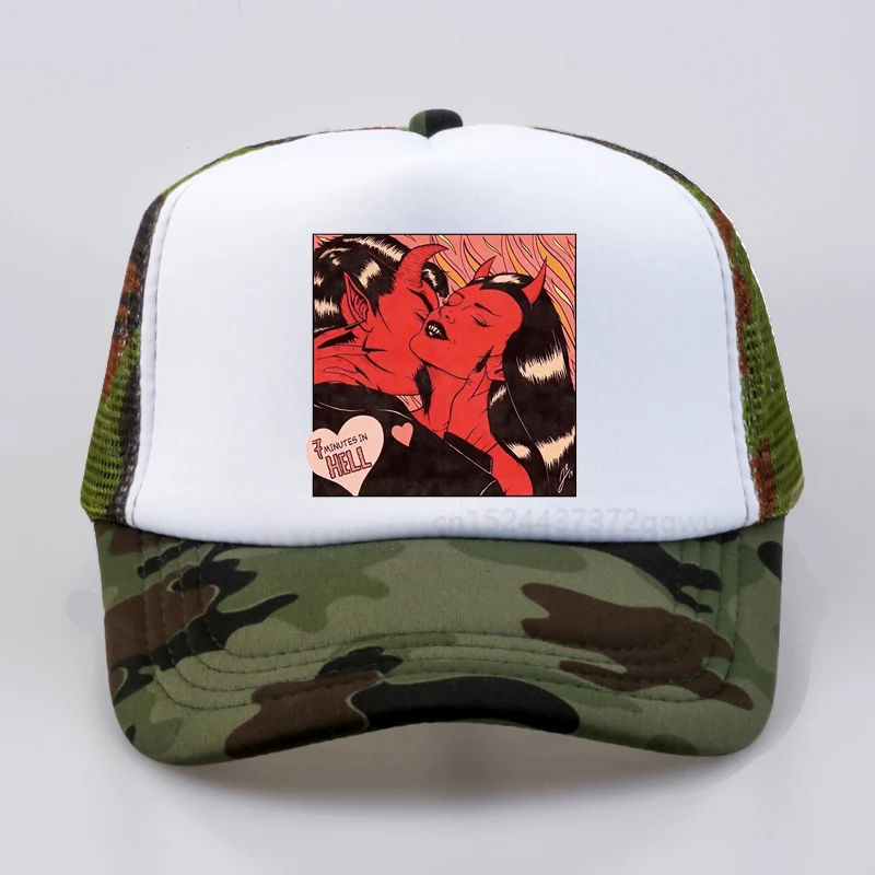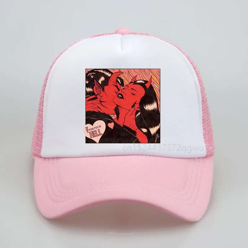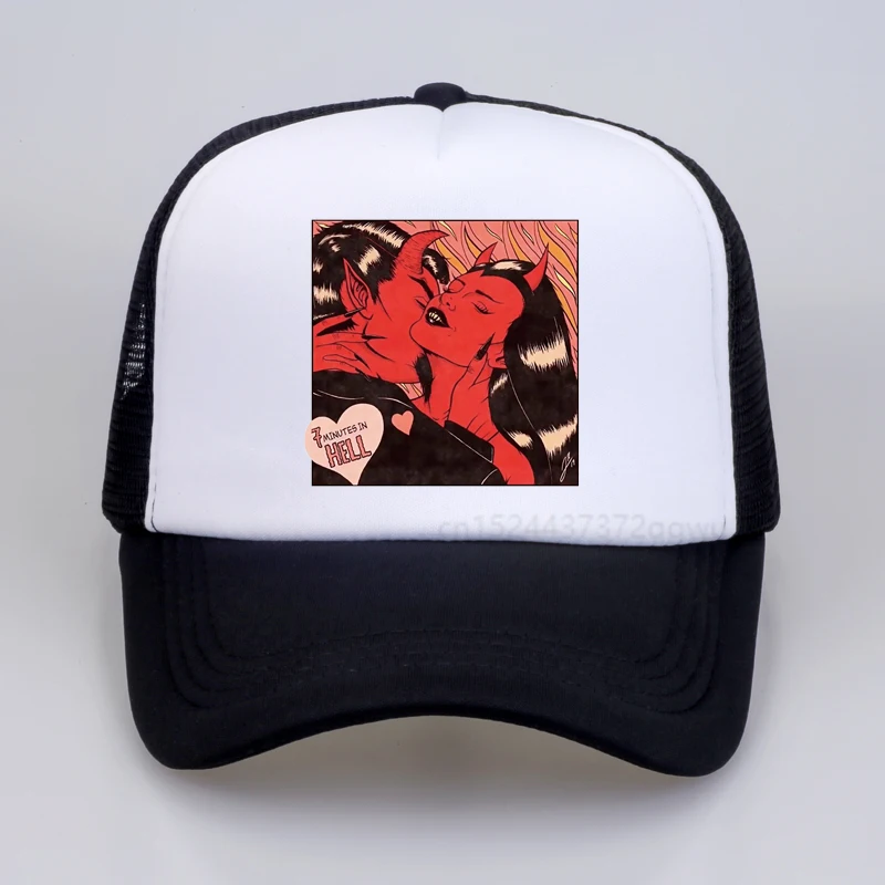 Летняя бейсболка с принтом Love Hell, шикарная винтажная Кепка в стиле Харадзюку С дьявольским поцелуем в стиле хип-хоп, модная бейсболка в стиле унисекс с ангелом и дьяволом