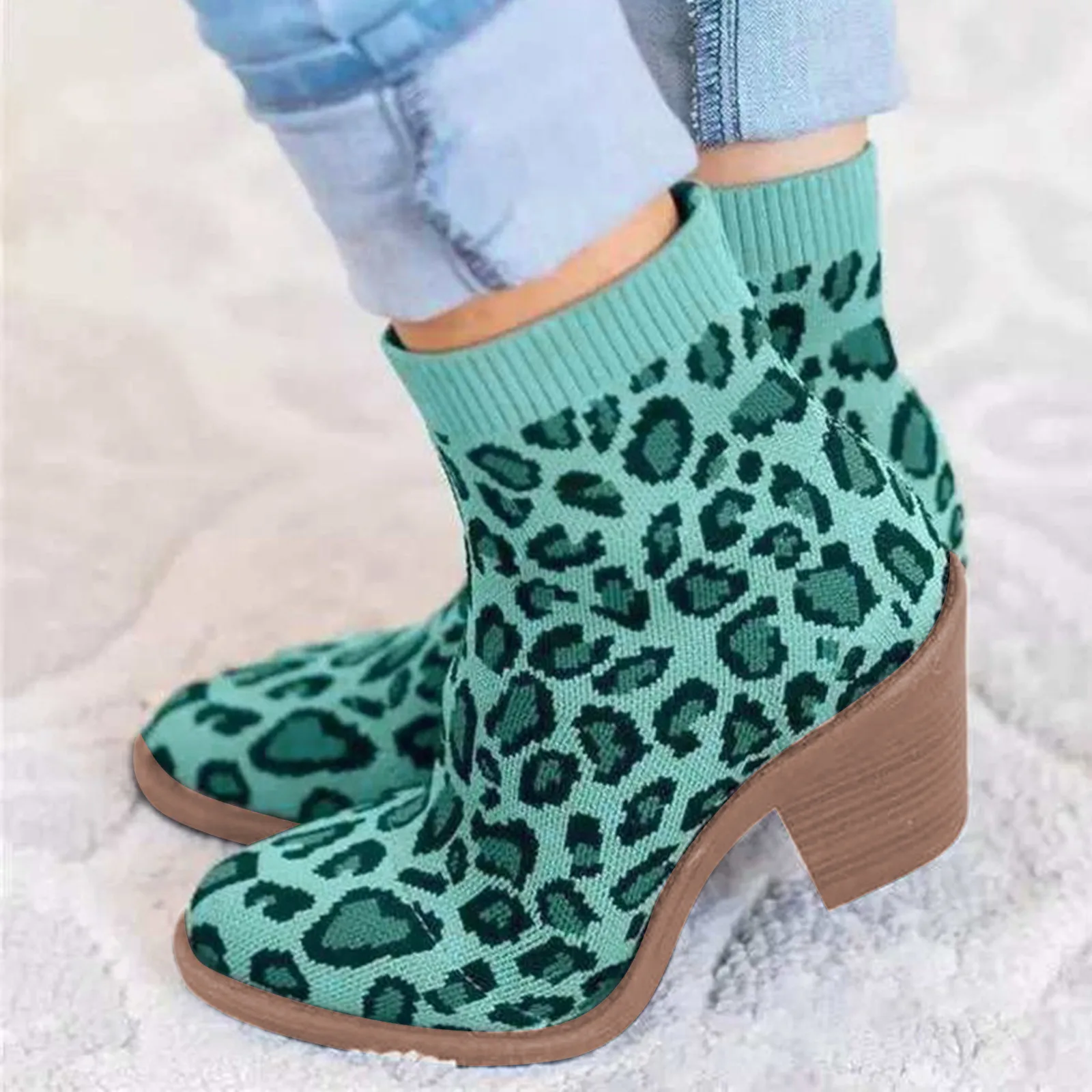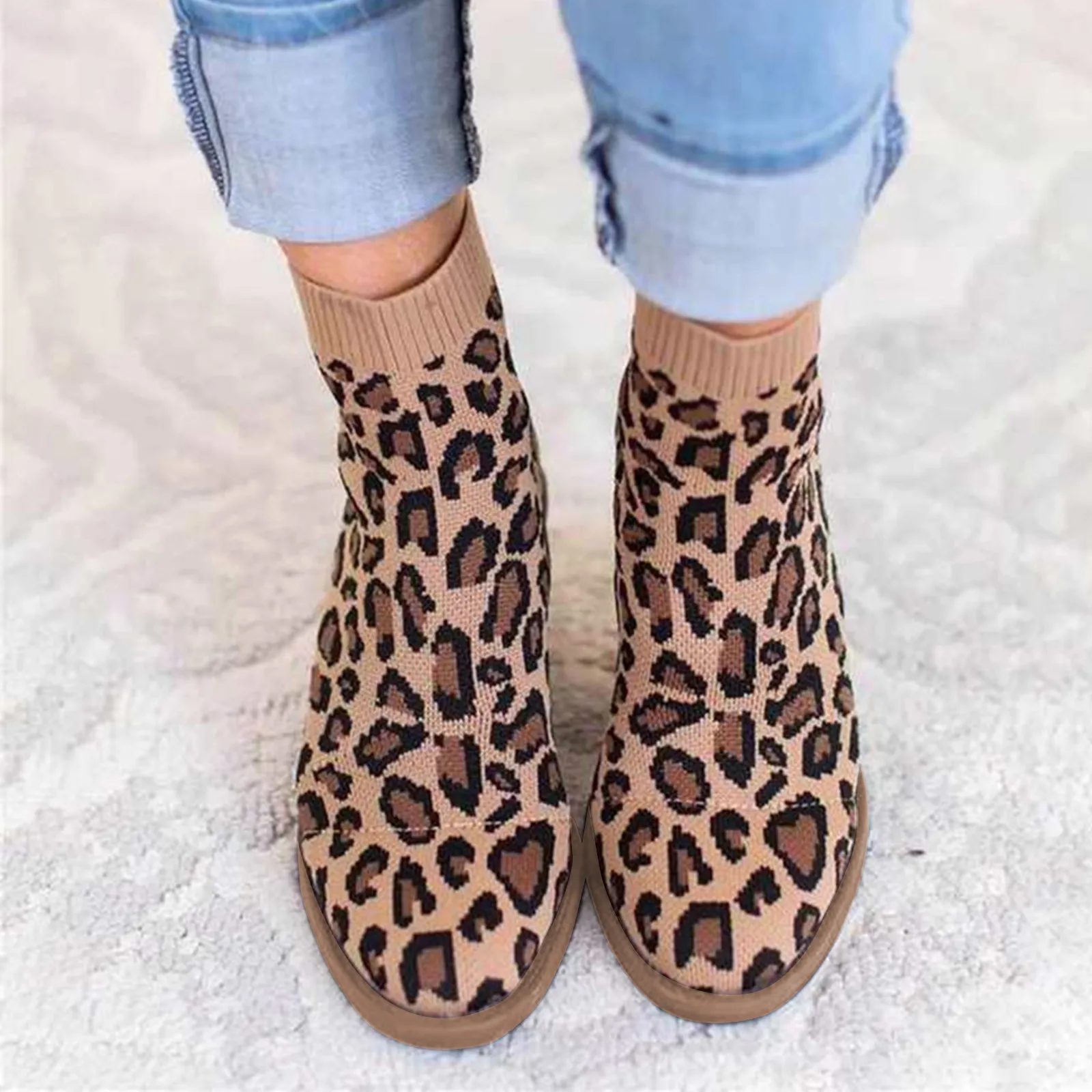 Ботинки-носки женские, на толстом каблуке, с леопардовым принтом, зима-осень, 2021