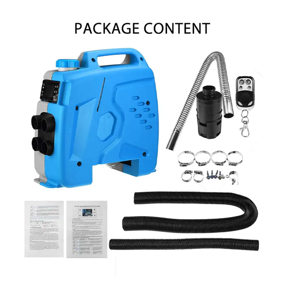 Комплектация:1 хост воздушного нагревателя1 х кнопочный переключатель2 впускных трубы1 х выхлопная труба7 х зажимов5 Винтов1 гайка1 Масляный насос1 х ИнструкцияОсобенности:-Простота установки, экономичность и удобство. Может использоваться как размораживание оконных стекол, а также для служб теплоизоляции кабины, студии, салона.-- Все в одном блоке, экономит место и легко перемещается.-- Обогреватель может применяться для обогрева кабины грузовых автомобилей, аккумуляторных автомобилей и всех видов других транспортных средств.-- Летучая технология, с помощью керамической вилки зажигания нагрев топлива испаряется в газ, быстрое зажигание, полное сгорание-- Дальность дистанционного управления может достигать 50 м-- Большой цифровой дисплей-- Воздуховыпускное отверстие с четырьмя отверстиямиСпецификация:Мощность: 5 кВтНапряжение: 12 В/24 В (опционально)Цвет: синий + серыйРазмер: 34*17*40 см/13,4*6,7*15,7 дюймаЭффективное расстояние дистанционного управления: 50 метровПримечание:1. Возможны отклонения на 0,5-1 см из-за ручного измерения.2. Из-за разницы светильник щении и экранах цвет изделия может немного отличаться от изображения.