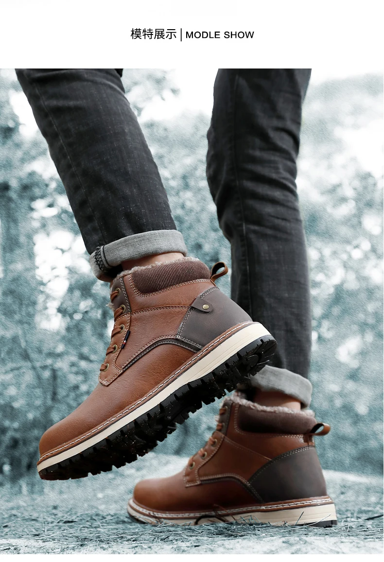 Мужские ботинки, кожаные, водонепроницаемые, спортивные, очень тепл...