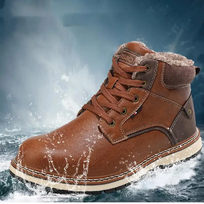 Мужские уличные ботинки с высоким верхом, походная обувь на платформе, Нескользящие водонепроницаемые ботинки для приключений, бархатные теплые уличные зимние ботинки, Новинка